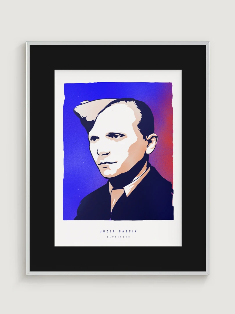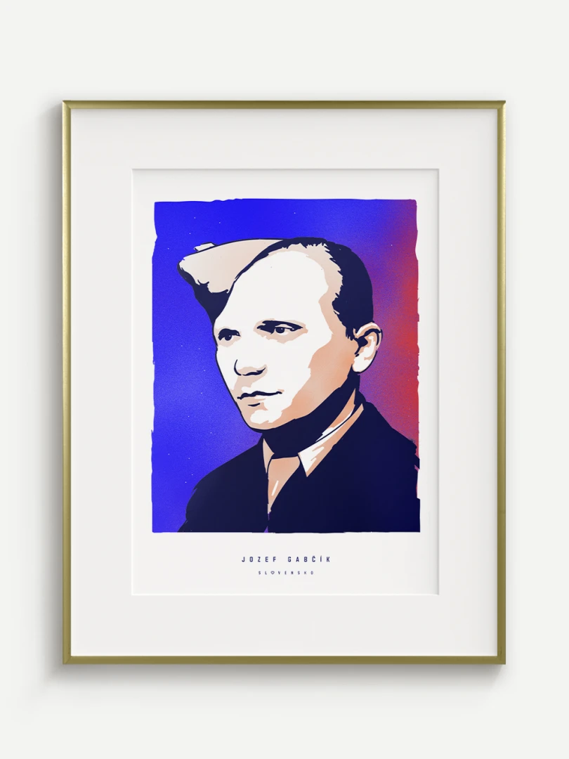 Obohaťte svoj interiér umeleckým printom, ktorý zachytáva Jozefa Gabčíka v originálnom pop-artovom štýle.