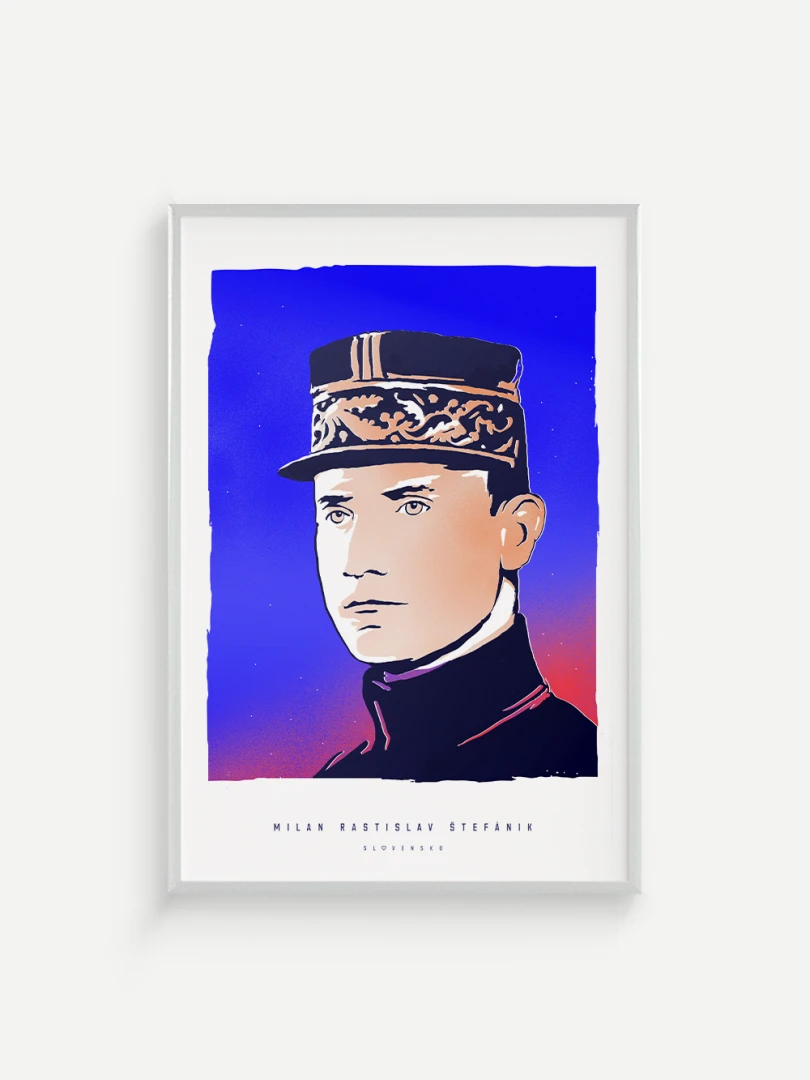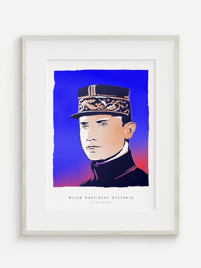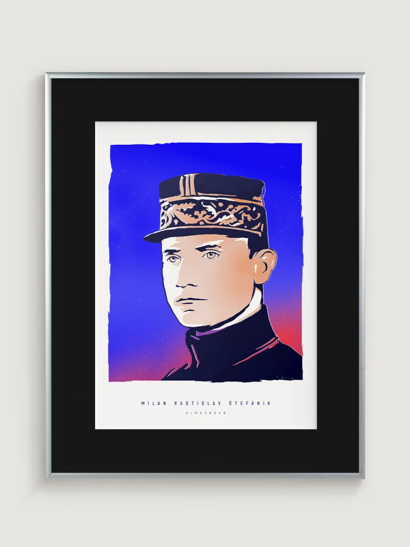 Jeho výnimočný príbeh a odkaz sú zachytené aj na tomto pop-artovom printe – modernom výtvarnom poňatí, ktoré spája historickú osobnosť s výraznou vizuálnou estetikou. Autorské vizuály najväčších osobností v histórii Slovenska vznikli ako spolupráca pre celonárodnú anketu, ktorá vyvrcholila slávnostným galavečerom v Slovenskej televízii. Víťazom hlasovania slovenských novinárov sa vtedy stal práve Milan Rastislav Štefánik.