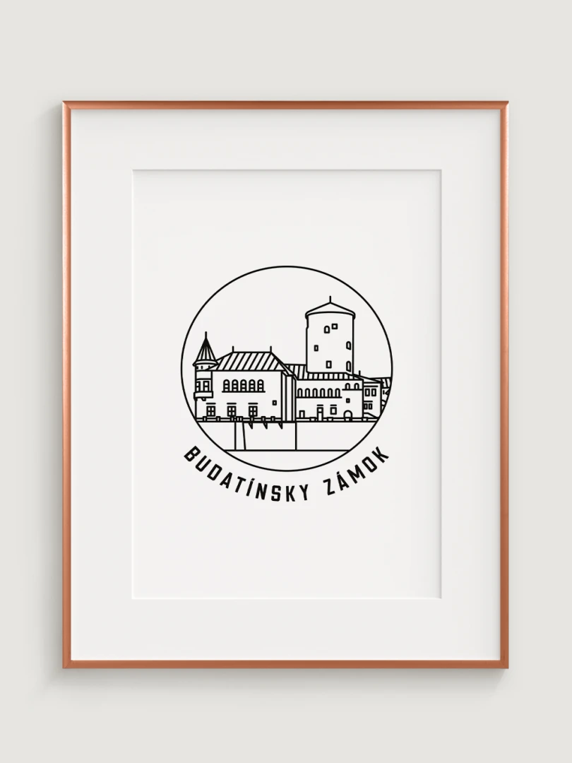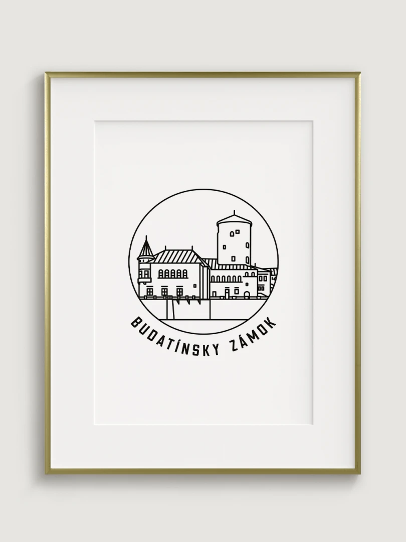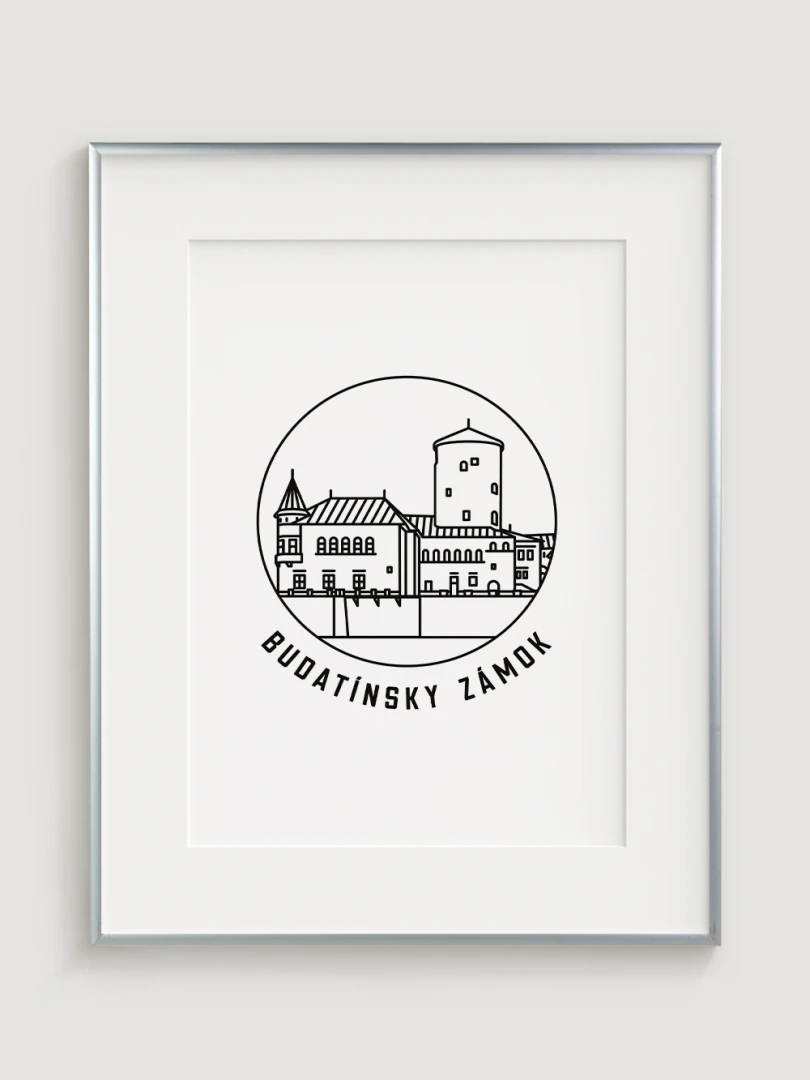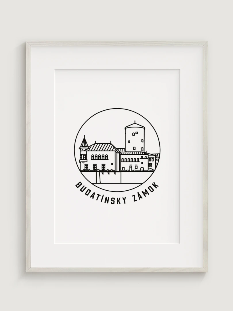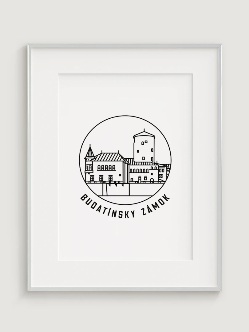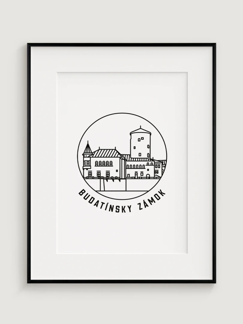 Tento print predstavuje štýlizované, minimalistické zobrazenie Budatínskeho zámku v Žiline, pamiatky, ktorá spája historické bohatstvo a krásu stredovekého dizajnu. Vypracovaný s jemnou čiernou linkovou kresbou na kvalitnom papieri, táto ilustrácia zachytáva detaily zámku v nadčasovom a elegantnom štýle.