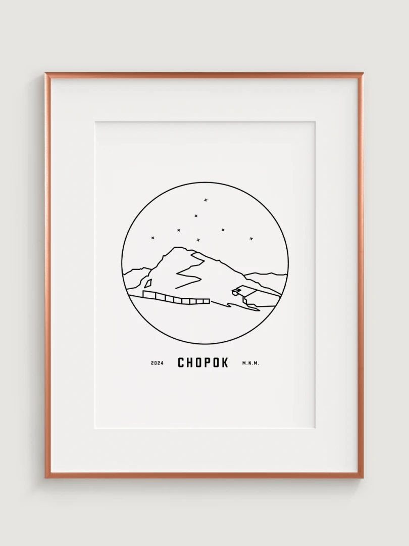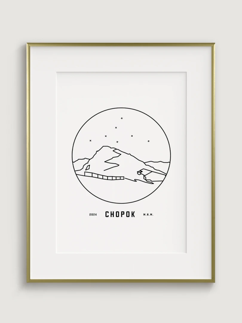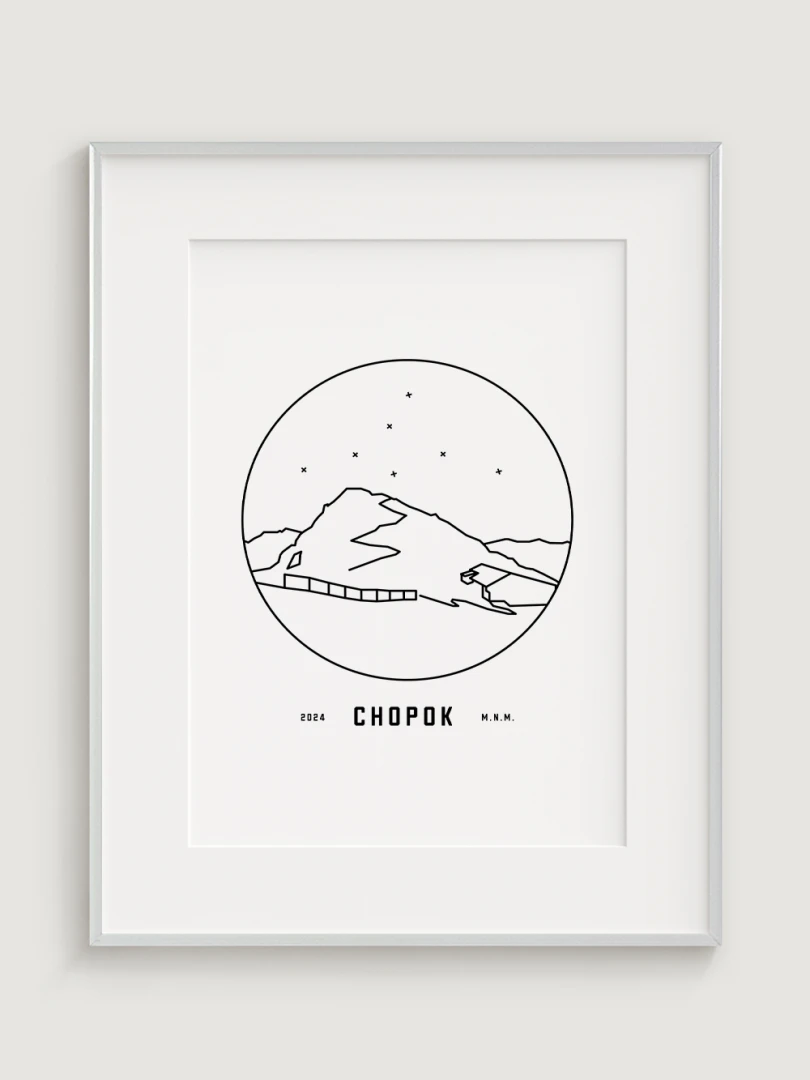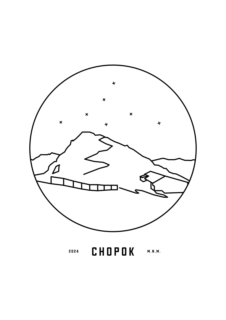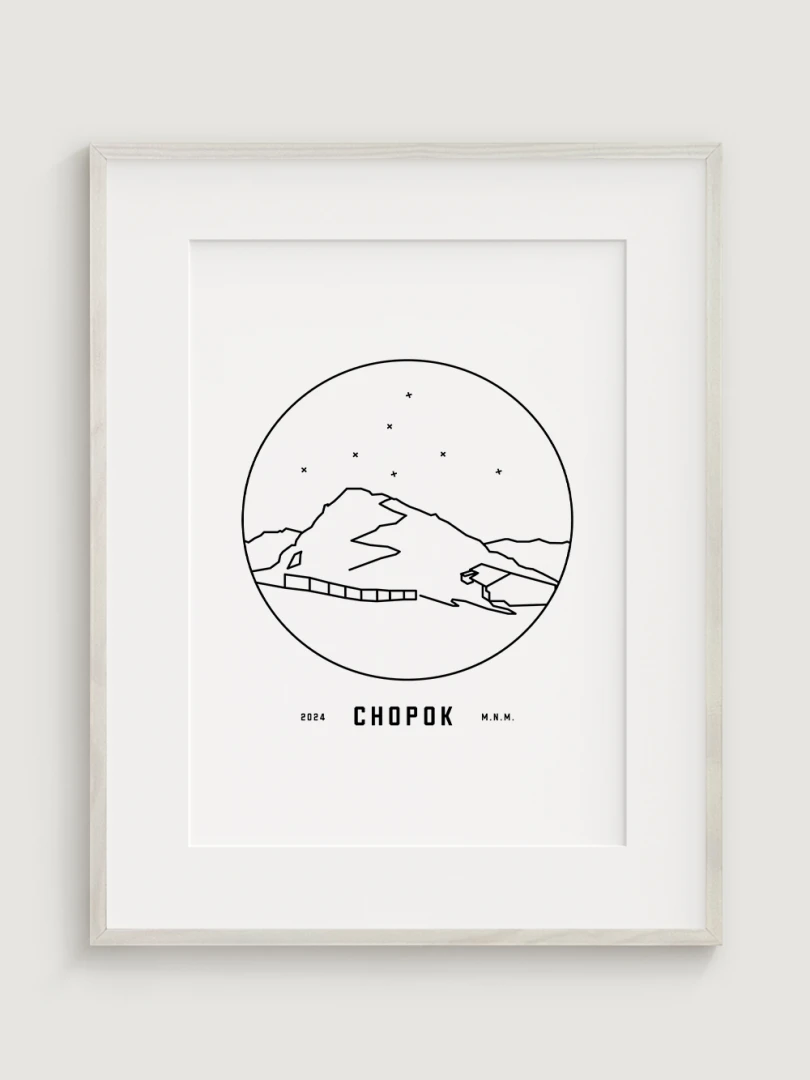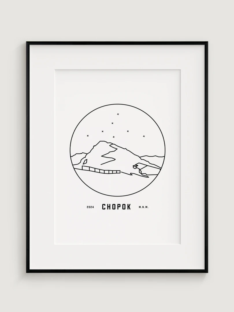 Vrch Chopok je znázornený v detailnej kruhovej vinete s uvedením jeho názvu a nadmorskej výšky, čo vytvára jedinečný a estetický doplnok pre milovníkov prírody a hôr. Tento print je ideálnym darčekom pre tých, ktorí si chcú domov priniesť kúsok slovenskej krajiny a majestátnosť jej vrcholov.