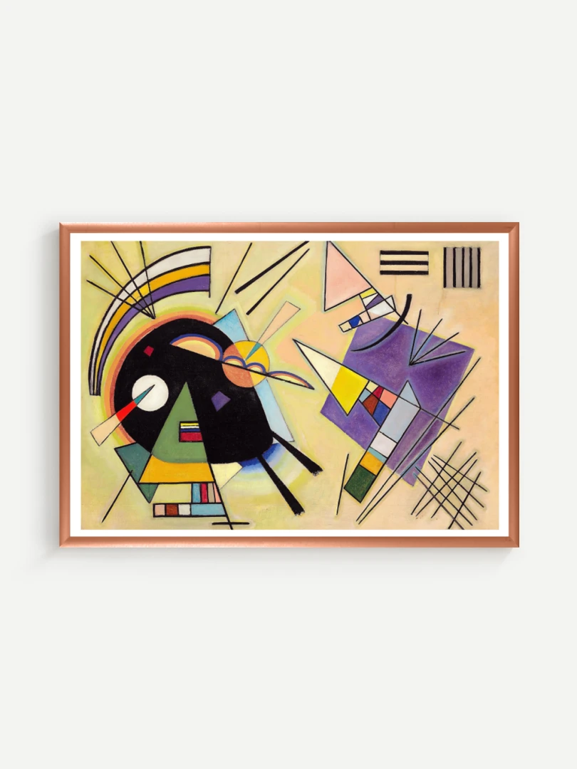 Tento print vychádza z obrazu Čierna a fialová (Black and Violet), ktorý Wassily Kandinsky vytvoril v roku 1923 počas svojho pôsobenia v Nemecku. Dielo je charakteristické dynamickou kompozíciou geometrických tvarov a línií, kde dominujú kontrastné farby čiernej a fialovej. Kandinskyho záujem o spojenie farby a formy vytvára vizuálny jazyk, ktorý je zároveň analytický aj emotívny.