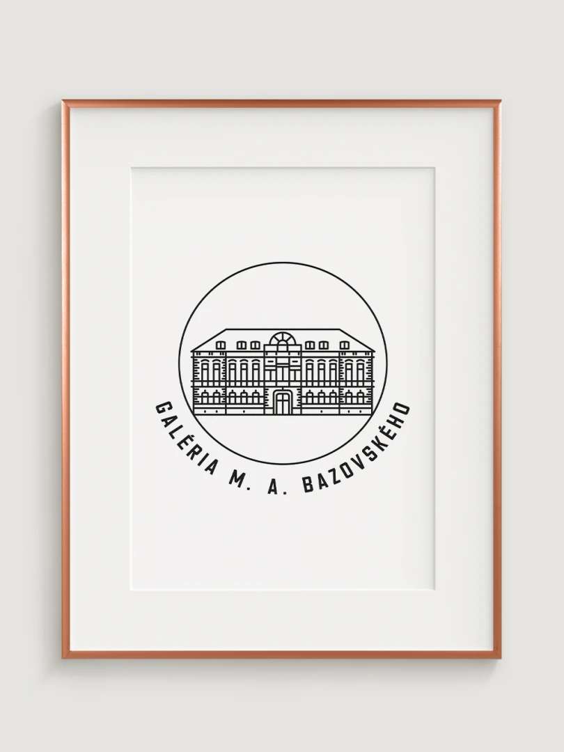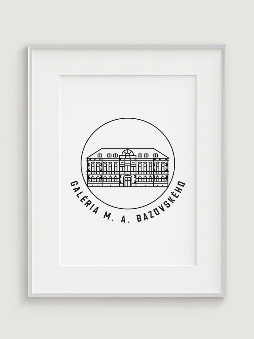 Tento minimalistický print štýlovo zobrazuje Galériu M. A. Bazovského v Trenčíne, významnú kultúrnu inštitúciu, ktorá uchováva a prezentuje diela slovenského moderného umenia. Detailný dizajn zvýrazňuje charakteristické prvky tejto historickej budovy a pripomína jej význam pre umelecký život mesta. Perfektný pre milovníkov umenia, histórie a kultúrnych priestorov, tento kúsok dodá vášmu interiéru sofistikovaný nádych.