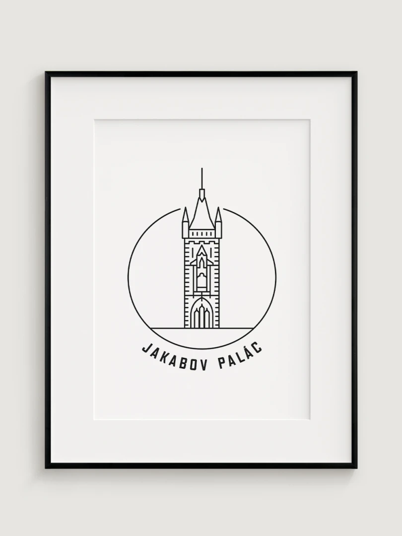 Tento print predstavuje štýlizované, minimalistické zobrazenie Jakabovho paláca v Košiciach, secesnej stavby s bohatou architektonickou krásou. Vypracovaný s jemnou čiernou linkovou kresbou na kvalitnom papieri, táto ilustrácia verne zachytáva jemné línie a detaily paláca v modernom a nadčasovom štýle.