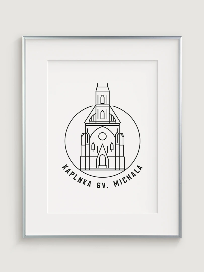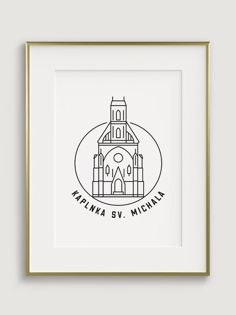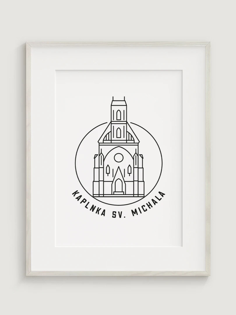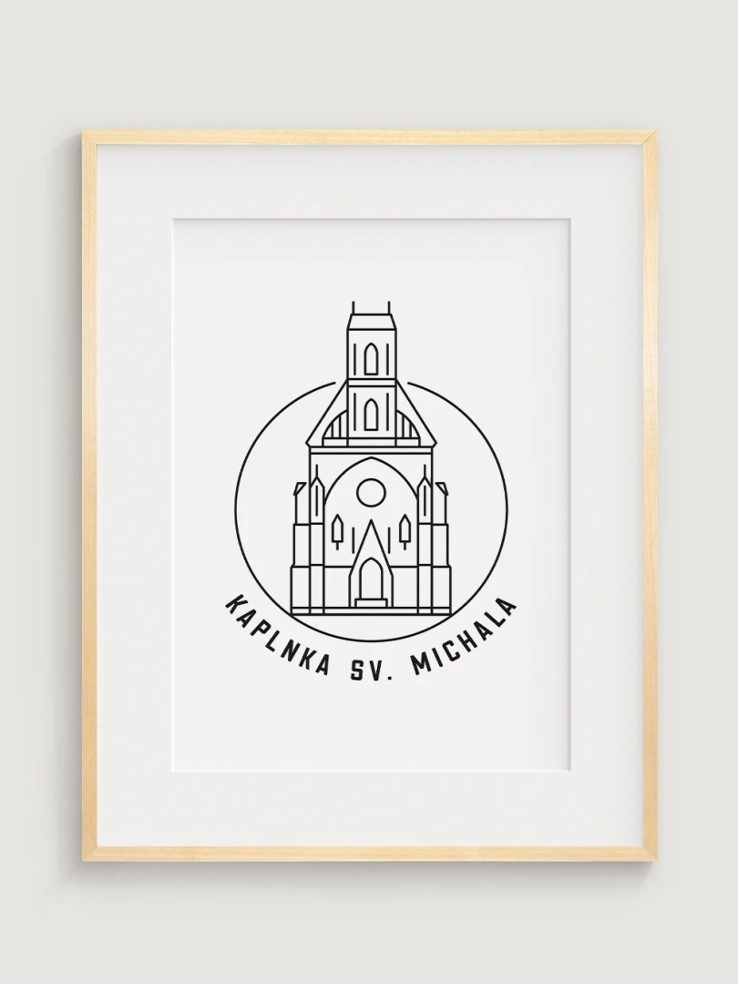 Tento print predstavuje štýlizované, minimalistické zobrazenie Kaplnky sv. Michala v Košiciach, barokovej stavby s historickým a kultúrnym významom. Vypracovaný s jemnou čiernou linkovou kresbou na kvalitnom papieri, táto ilustrácia verne odráža čisté línie a detailnú architektúru kaplnky v modernom a nadčasovom štýle.