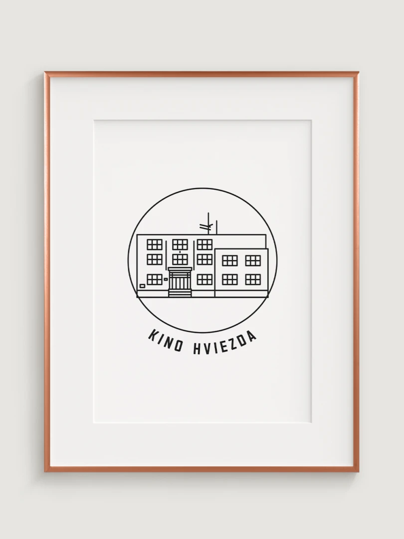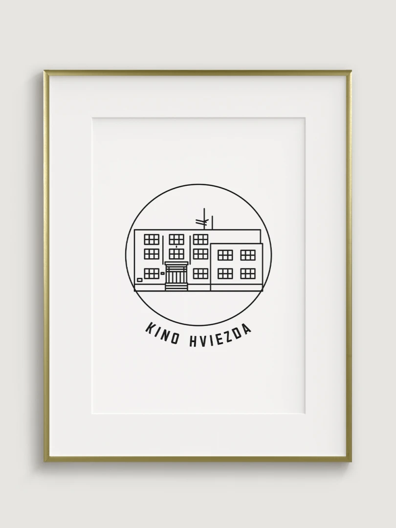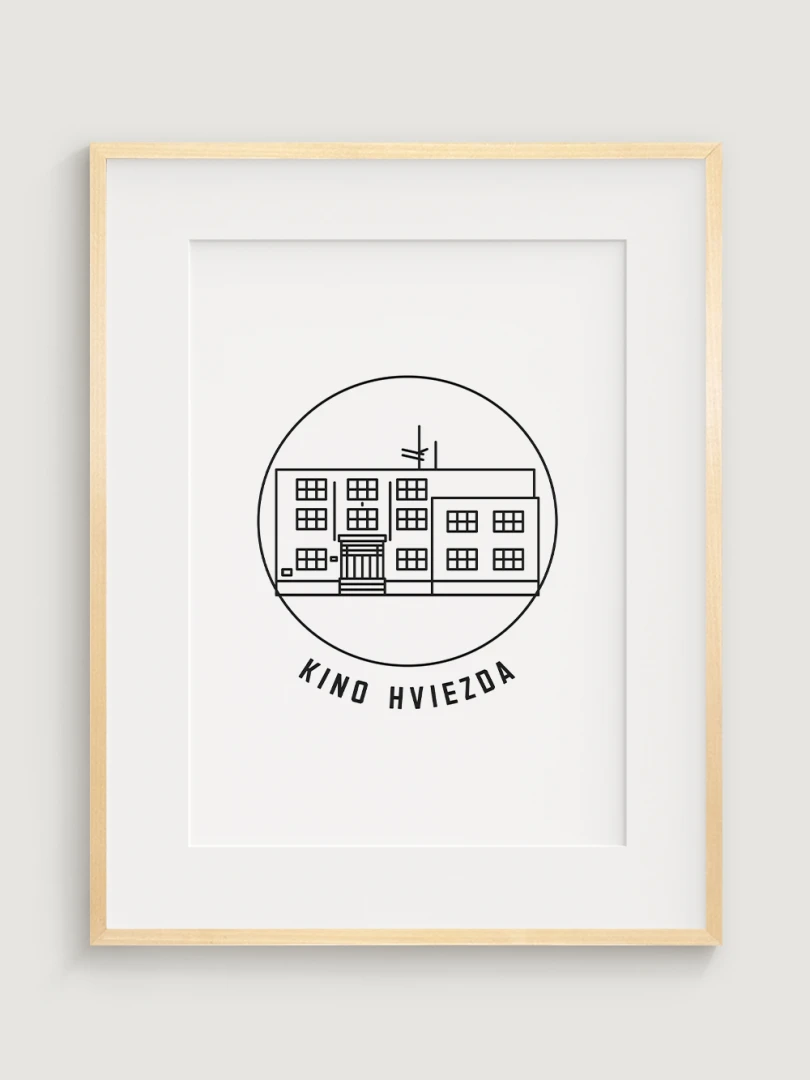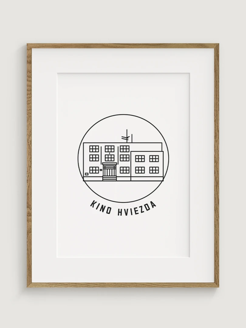 Tento umelecký print štýlovo zobrazuje Kino Hviezda v Trenčíne, kultový priestor, ktorý je dôležitým symbolom mestskej kultúry a filmovej tradície. Precízny dizajn zvýrazňuje jeho typickú funkcionalistickú architektúru, ktorá vnáša do mesta jedinečný vizuálny prvok. Perfektný pre tých, ktorí oceňujú spojenie histórie, architektúry a kinematografie – tento kúsok dodá vášmu priestoru nostalgickú atmosféru a ducha trenčianskeho kultúrneho dedičstva.