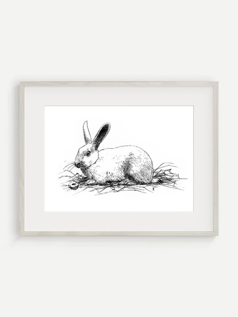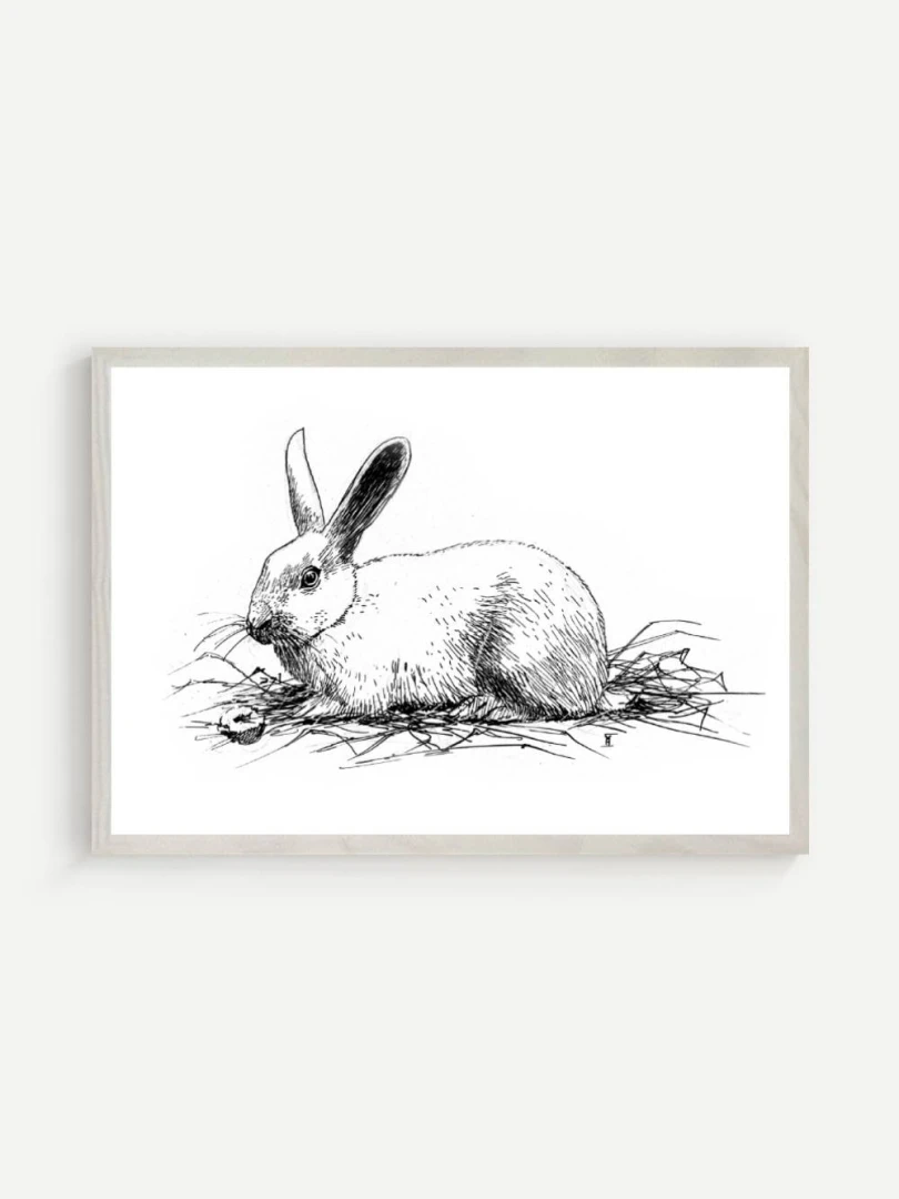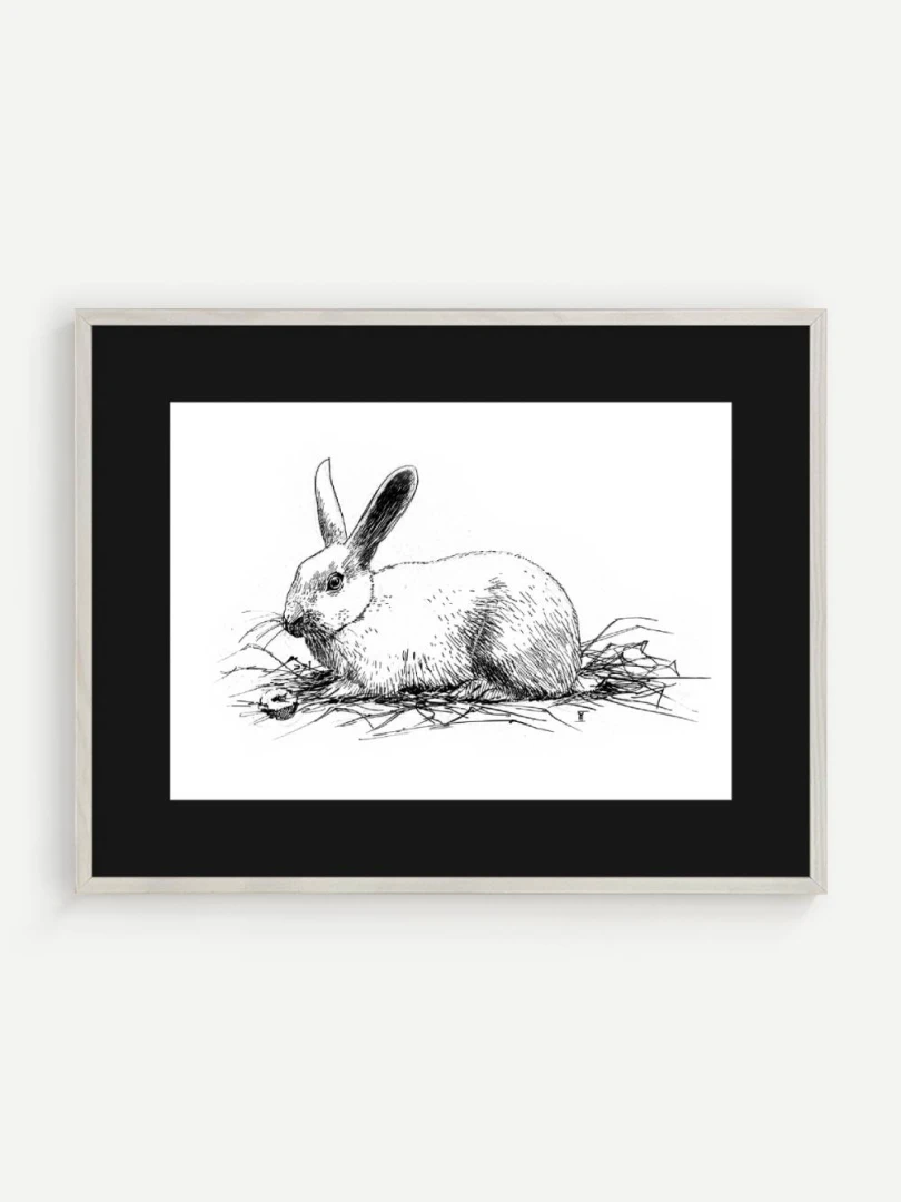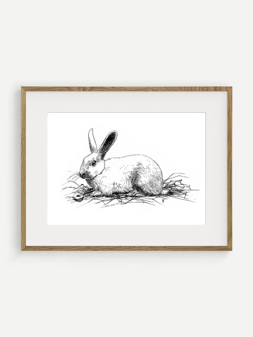 Print Králik sa skvelo hodí do interiérov s jemnou farebnosťou a záujmom o prírodné či ilustrátorské motívy. Výborne zapadne do detskej izby, štýlovej pracovne alebo čitárne, no krásne sa uplatní aj v minimalistickom alebo severskom priestore ako pokojný výtvarný akcent. Je to print, ktorý osloví každého, kto má rád minimalizmus, či králikov alebo zajačikov.