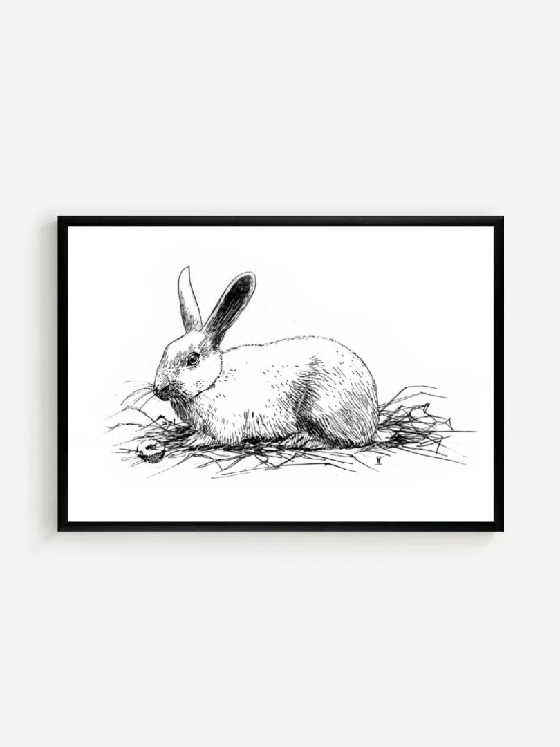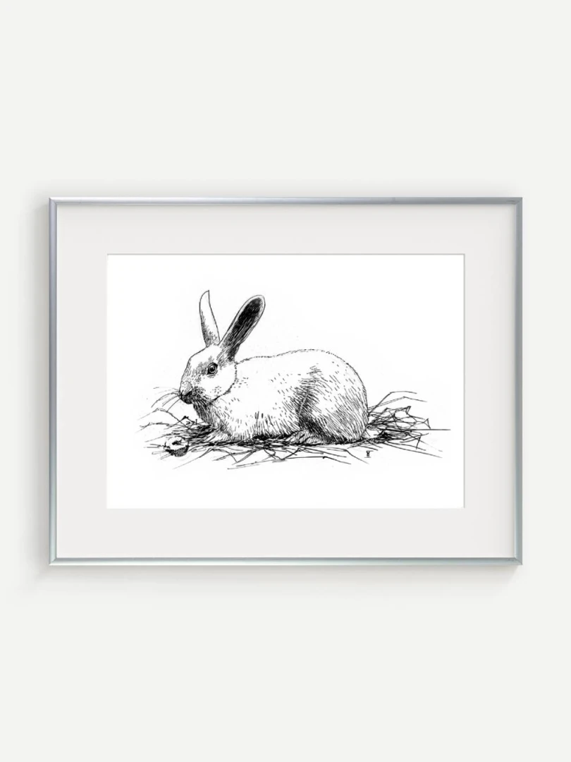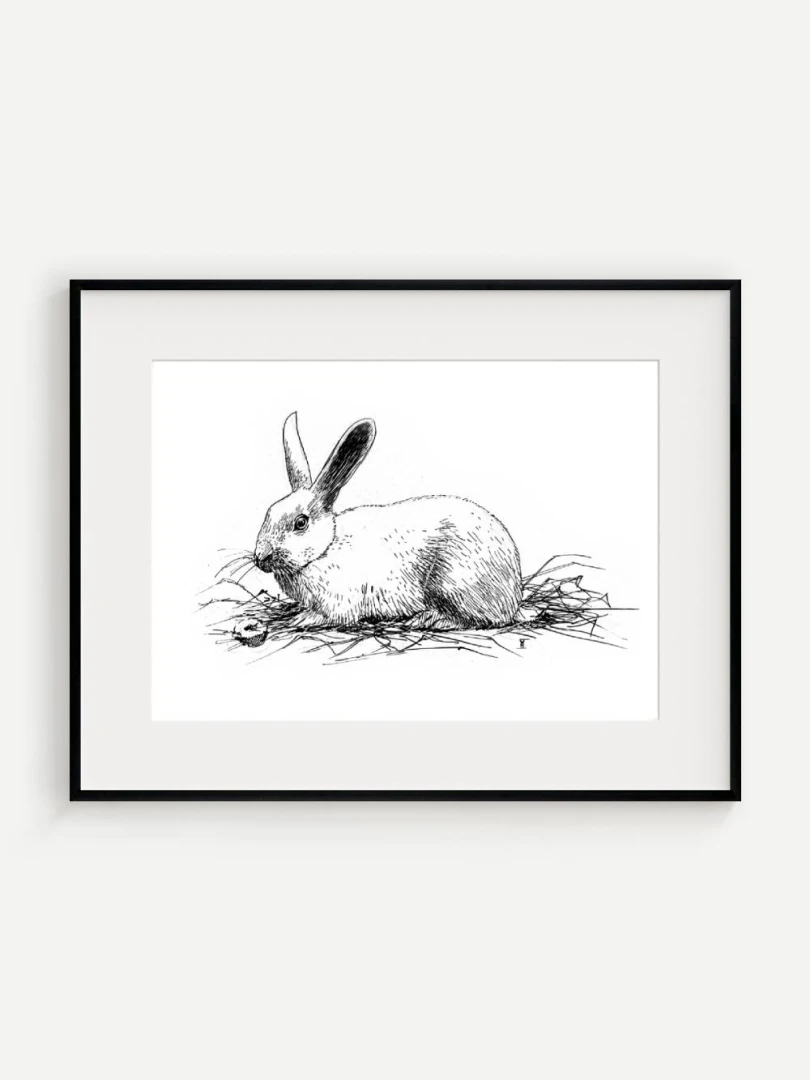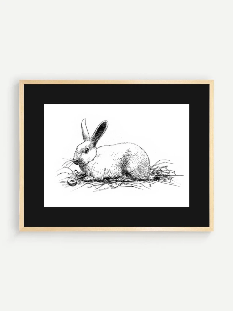 Print Králik sa skvelo hodí do interiérov s jemnou farebnosťou a záujmom o prírodné či ilustrátorské motívy. Výborne zapadne do detskej izby, štýlovej pracovne alebo čitárne, no krásne sa uplatní aj v minimalistickom alebo severskom priestore ako pokojný výtvarný akcent. Je to print, ktorý osloví každého, kto má rád minimalizmus, či králikov alebo zajačikov.