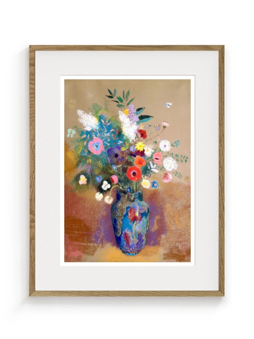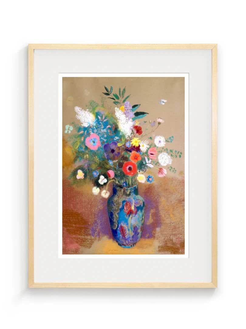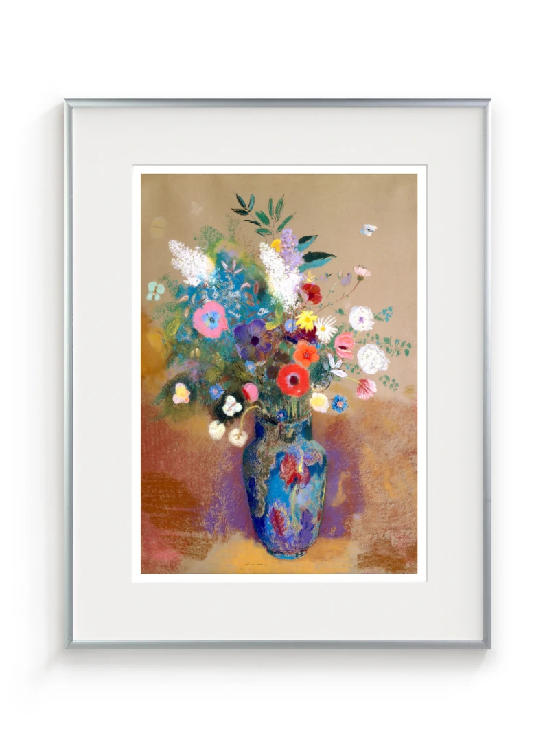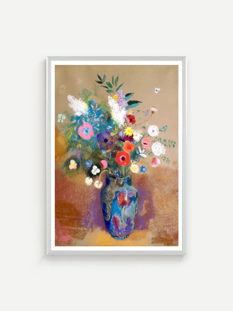 Tento print vychádza z obrazu Kytica kvetín (Bouquet of Flowers), ktorý Odilon Redon namaľoval približne v roku 1903. Na prvý pohľad ide o klasickú kyticu vo váze, no Redon ju premieňa na víziu: kvety ako farebné svetlá plávajúce v priestore, akoby vznikli z nálady, nie z prírody. Kompozícia je voľná a vzdušná.