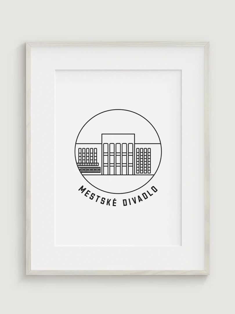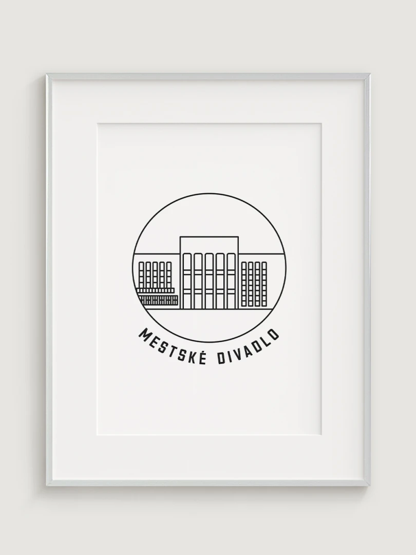 Tento print predstavuje štýlizované, minimalistické zobrazenie Mestského divadla v Žiline, budovy, ktorá spája historický a moderný dizajn s kultúrnym významom. Vypracovaný s jemnou čiernou linkovou kresbou na kvalitnom papieri, táto ilustrácia zachytáva čisté línie a formy divadla v nadčasovom a elegantnom štýle.