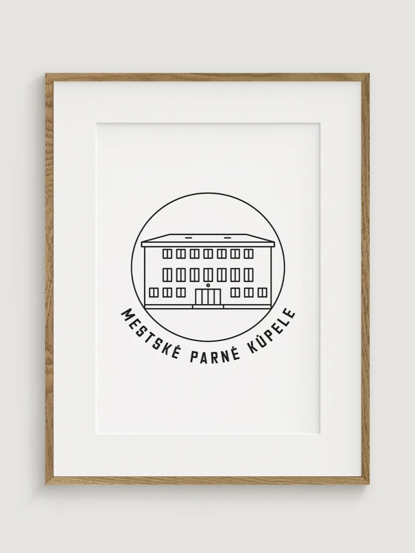 Priblížte si nostalgickú atmosféru Trnavy s umeleckým printom Mestských parných kúpeľov, ikonickej stavby, ktorá bola kedysi symbolom oddychu, zdravia a moderného mestského života.