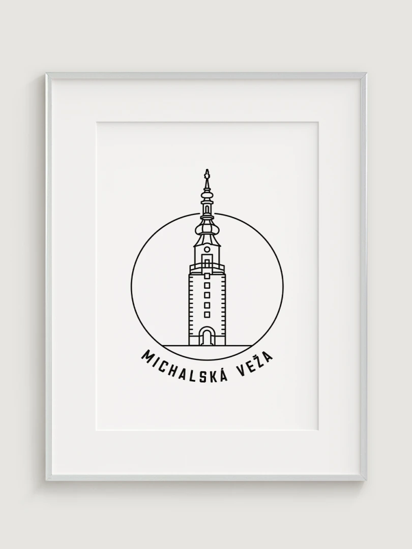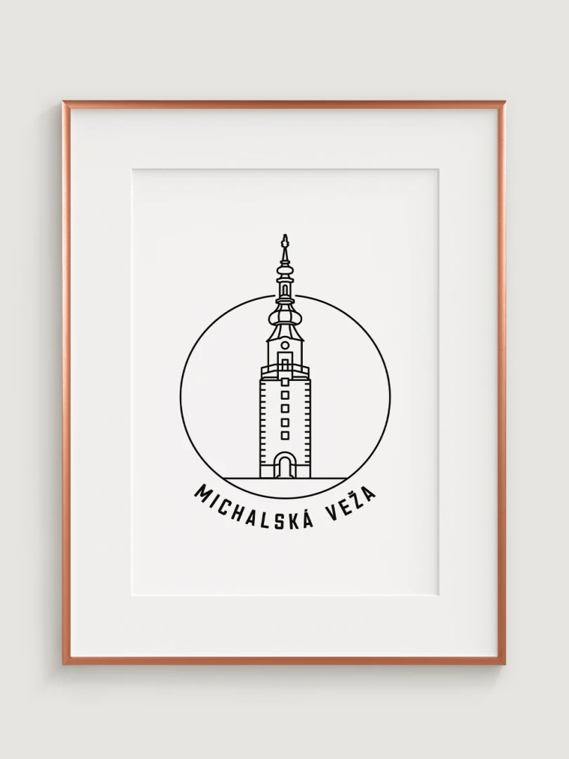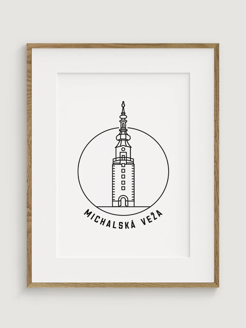 Tento umelecký print štýlovo zobrazuje ikonickú Michalskú vežu, historickú dominantu Bratislavy, ktorá je jedinou zachovanou mestskou bránou zo stredoveku. Elegantný, lineárny dizajn zachytáva jedinečnosť tejto pamiatky a jej symbolického významu. Perfektný pre tých, ktorí oceňujú históriu, architektúru a jedinečné detaily, tento kúsok dodá vášmu priestoru nádych kultúrneho dedičstva.