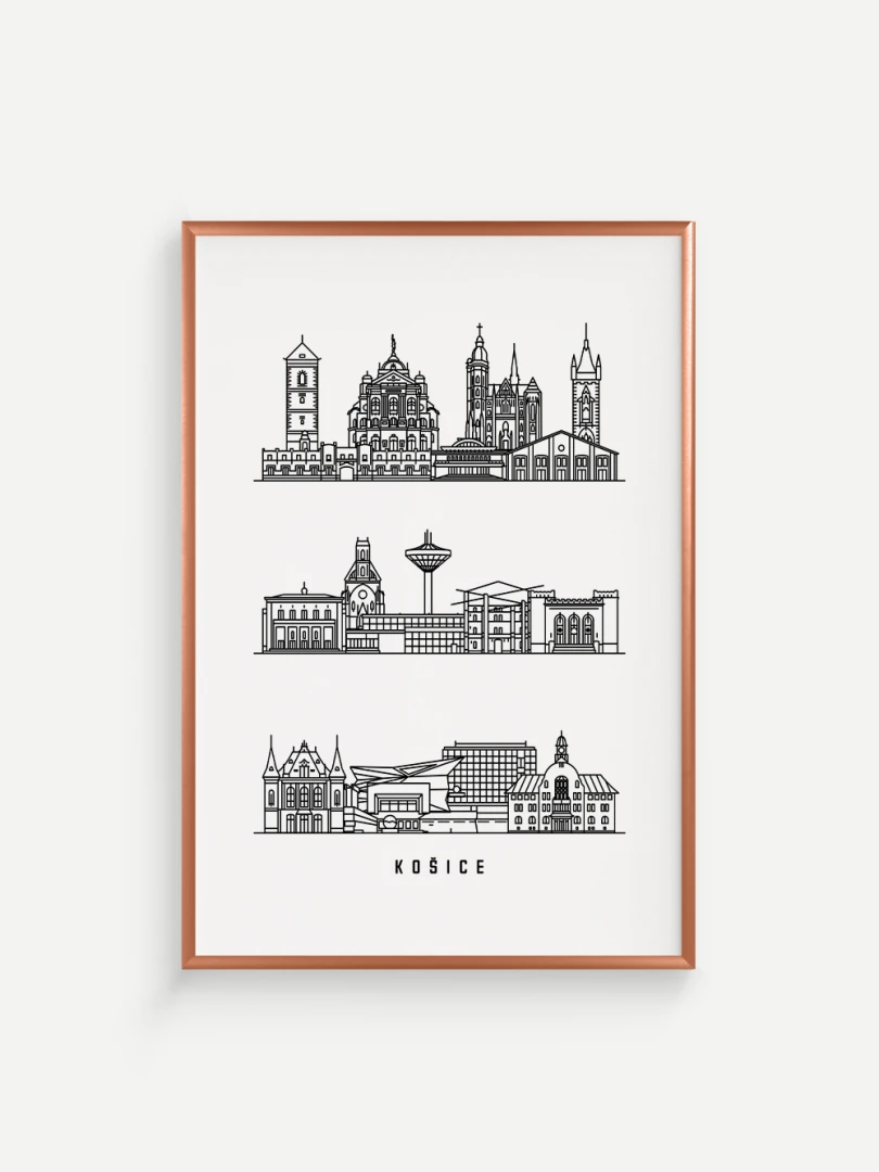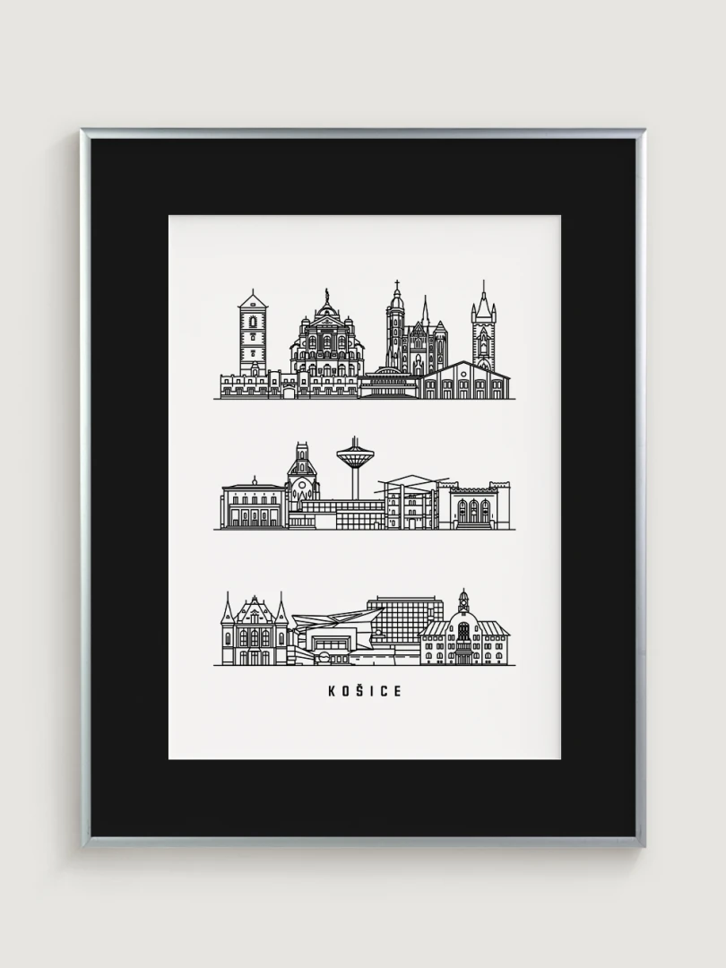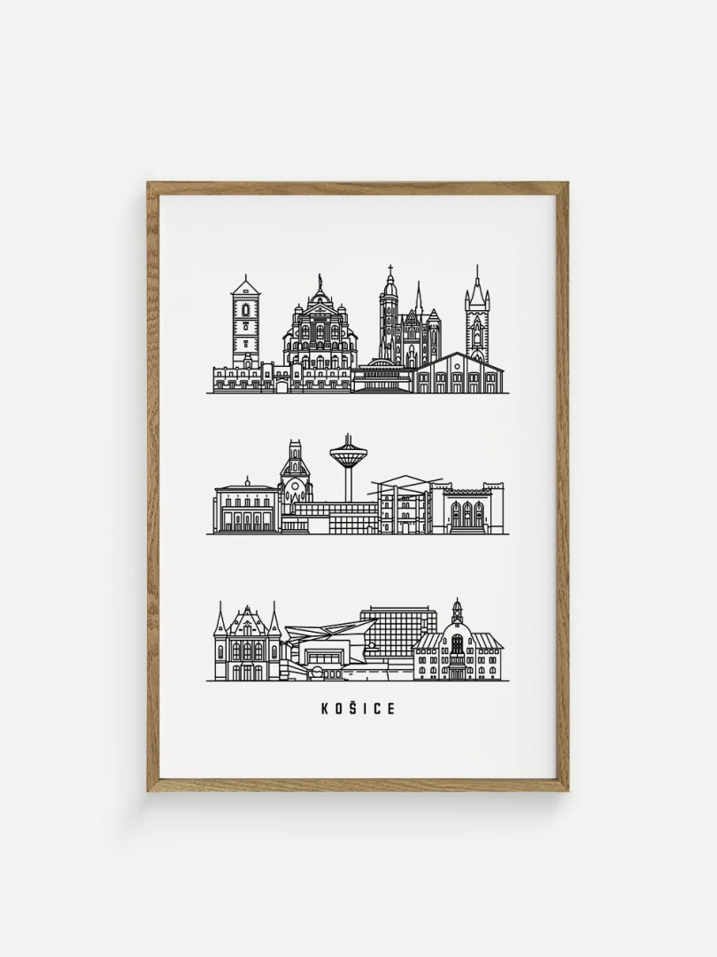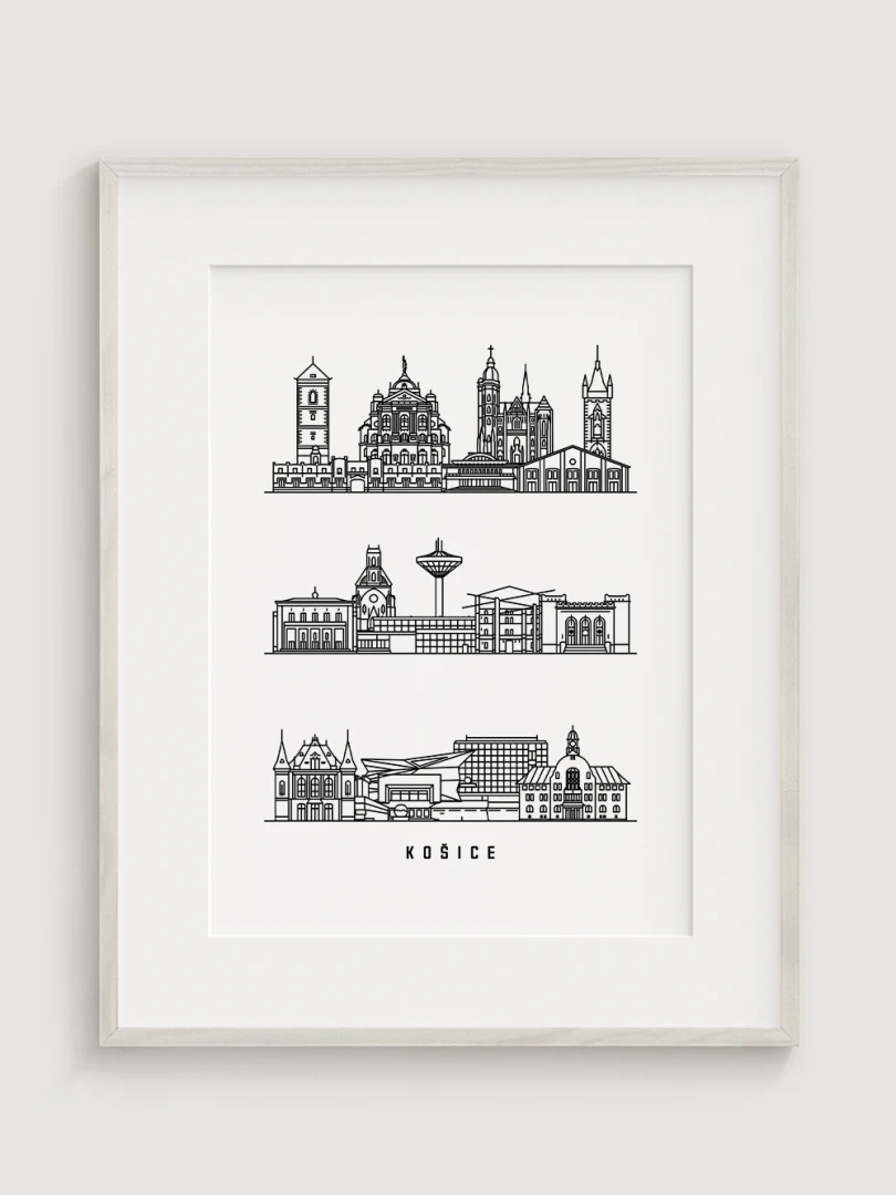 Tento print zachytáva podstatu historickej a architektonickej krásy Košíc prostredníctvom elegantnej, lineárnej kresby najikonickejších pamiatok mesta. Každý ťah je starostlivo vypracovaný tak, aby zvýraznil jedinečný panoramatický pohľad Košíc, čo z neho robí dokonalý kúsok pre milovníkov architektúry a minimalistického dizajnu.