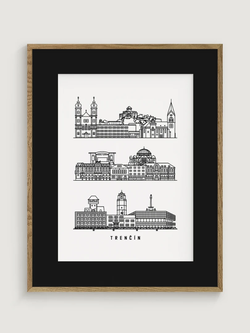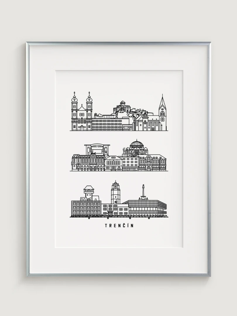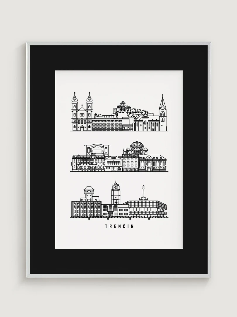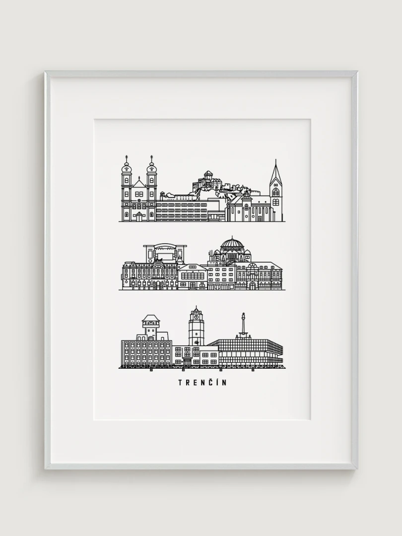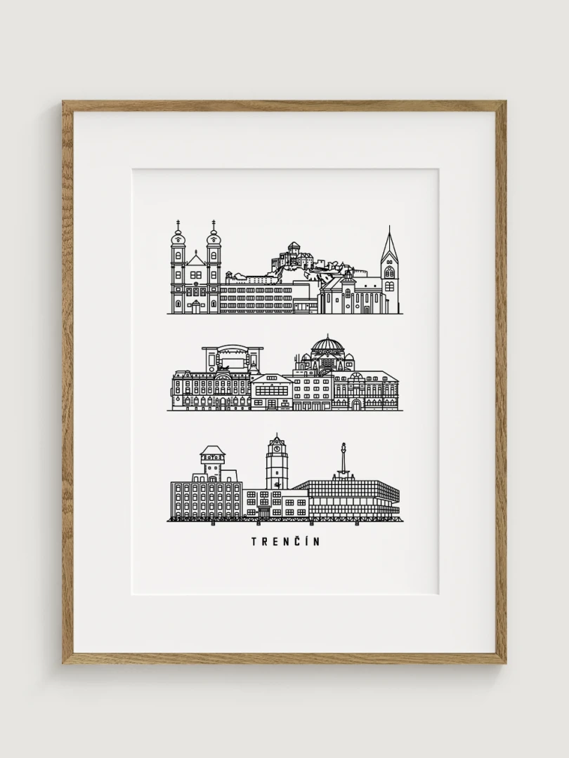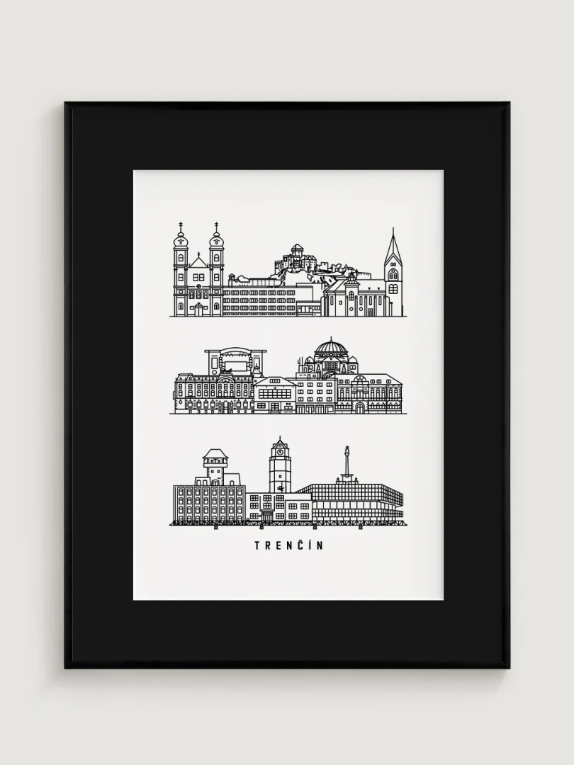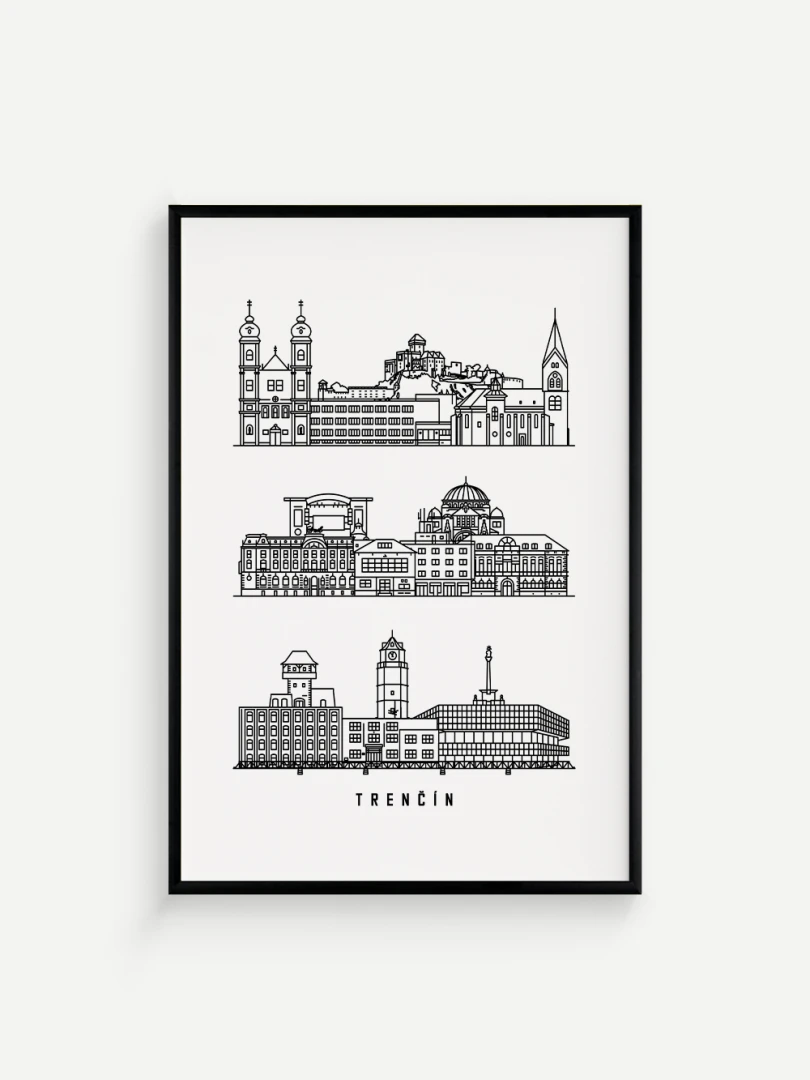 Tento print zachytáva podstatu historickej a architektonickej krásy Trenčína prostredníctvom elegantnej, lineárnej kresby najikonickejších pamiatok mesta. Každý ťah je starostlivo vypracovaný tak, aby zvýraznil jedinečný panoramatický pohľad Trenčína, čo z neho robí dokonalý kúsok pre milovníkov architektúry a minimalistického dizajnu.