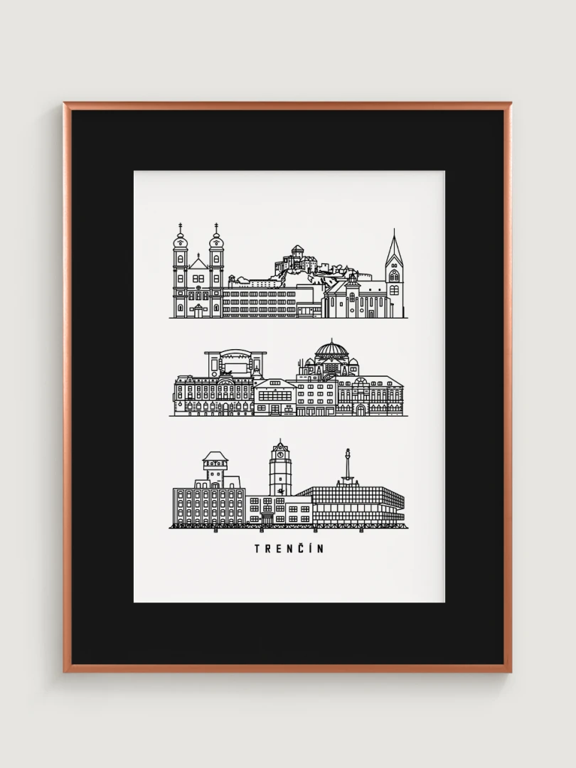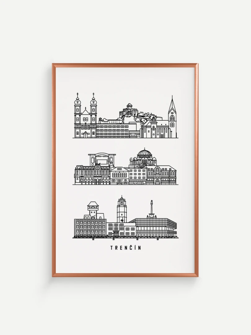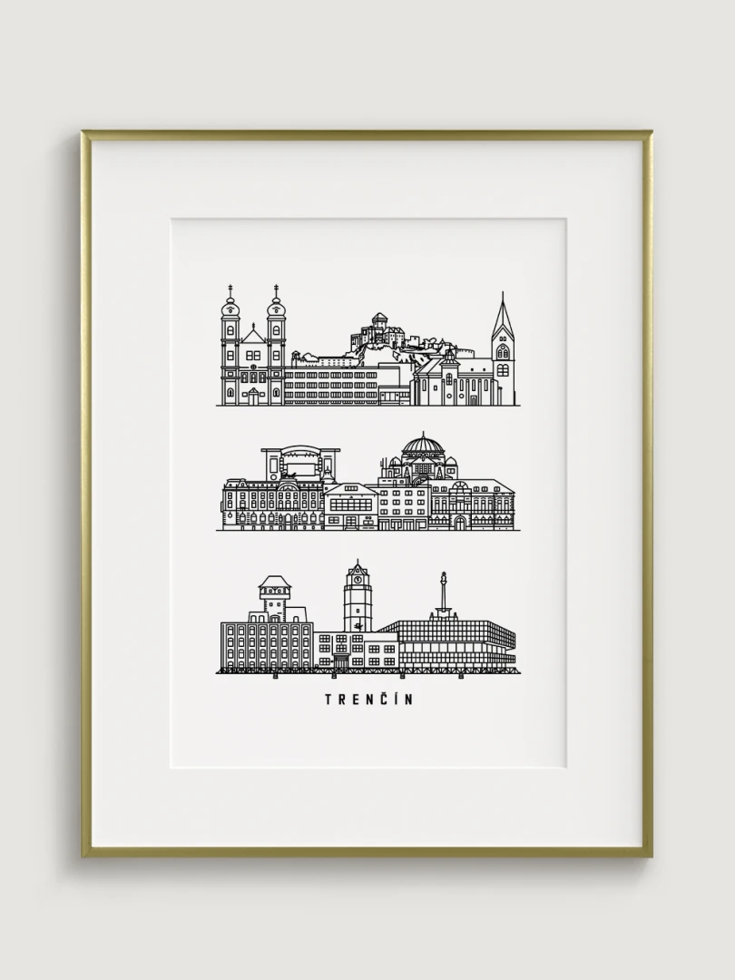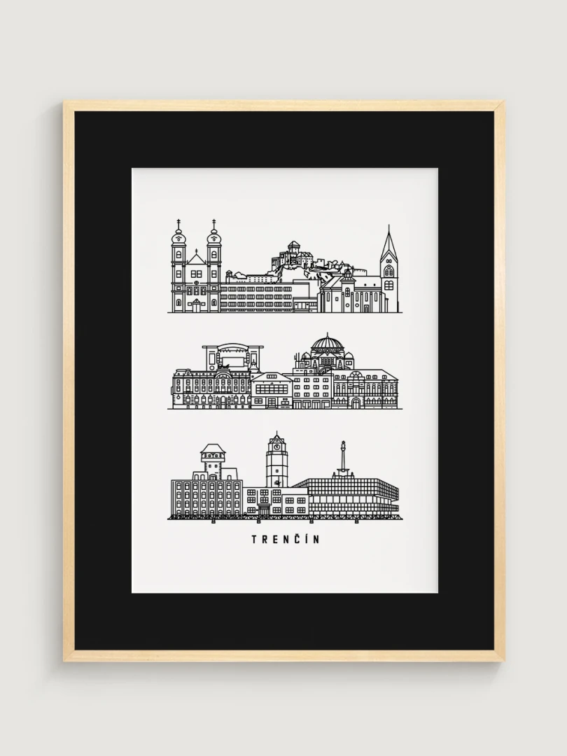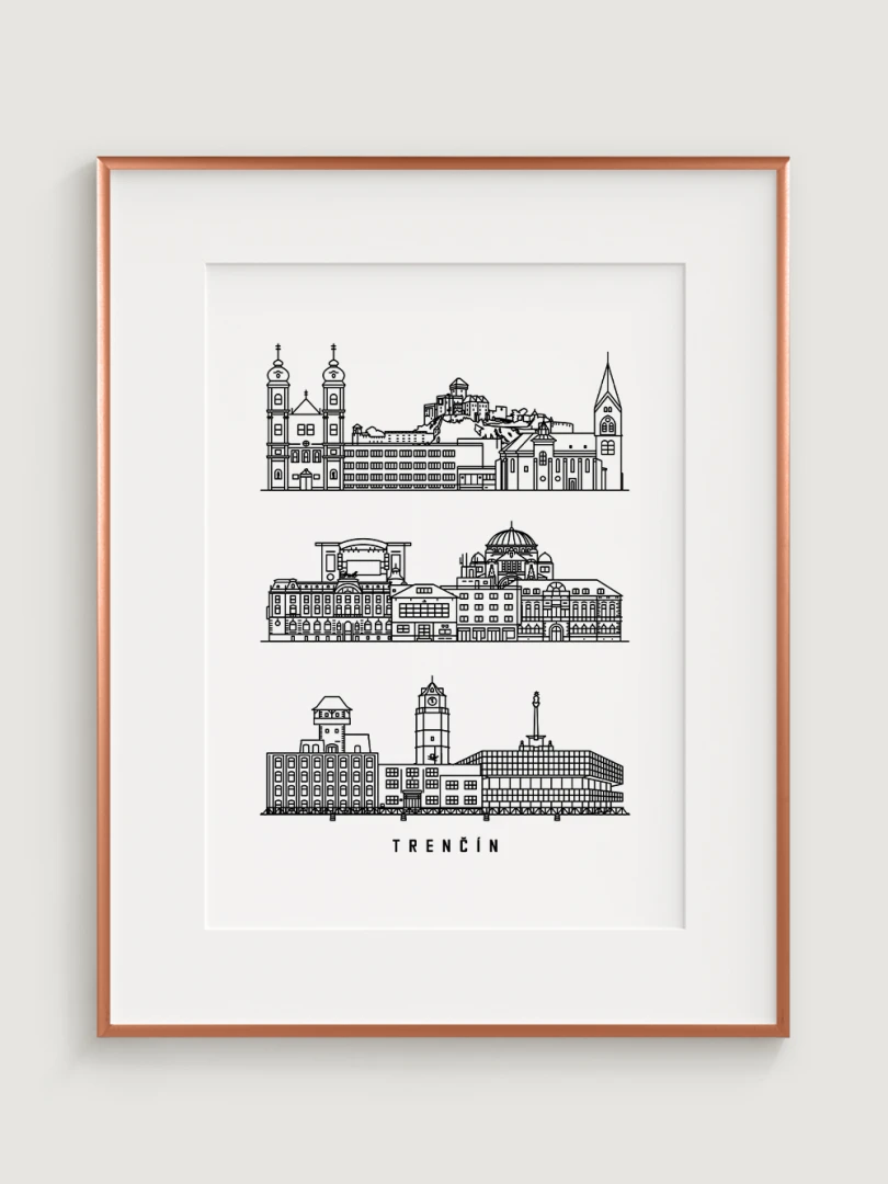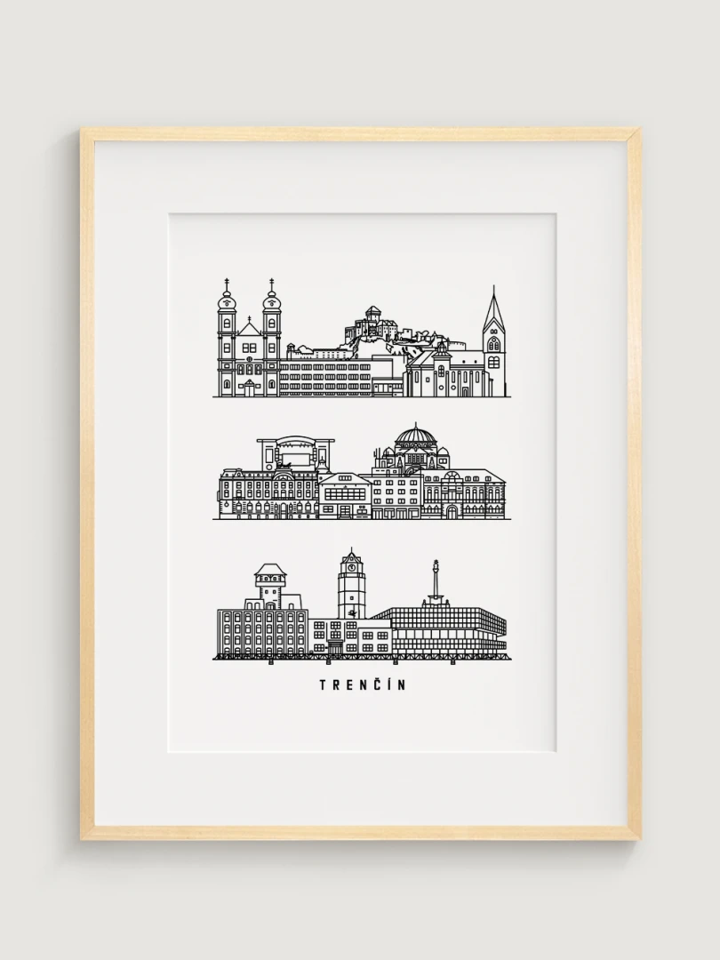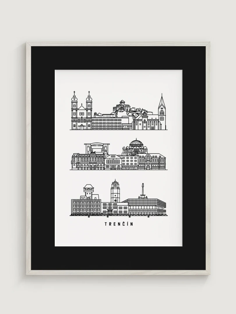 Tento print zachytáva podstatu historickej a architektonickej krásy Trenčína prostredníctvom elegantnej, lineárnej kresby najikonickejších pamiatok mesta. Každý ťah je starostlivo vypracovaný tak, aby zvýraznil jedinečný panoramatický pohľad Trenčína, čo z neho robí dokonalý kúsok pre milovníkov architektúry a minimalistického dizajnu.