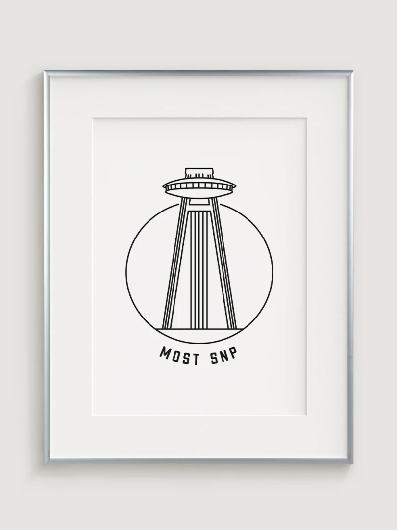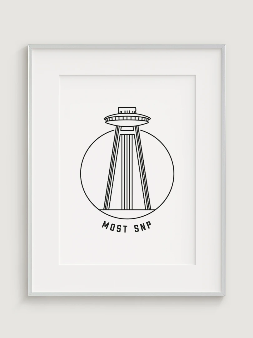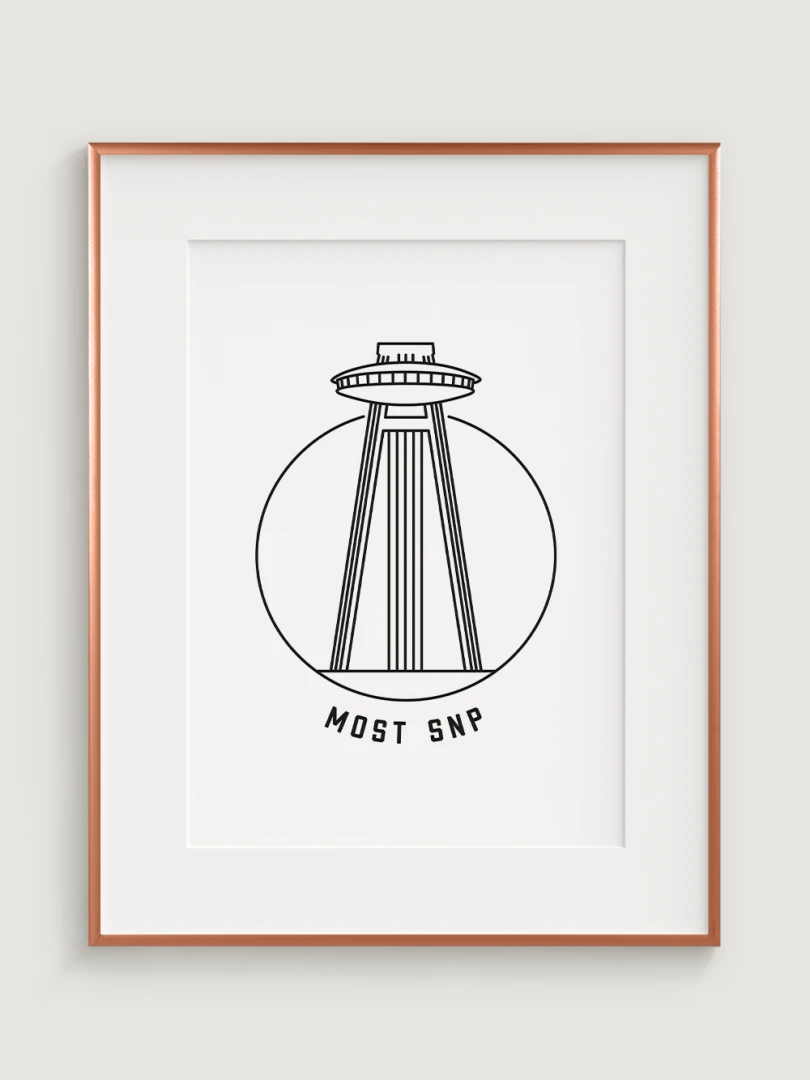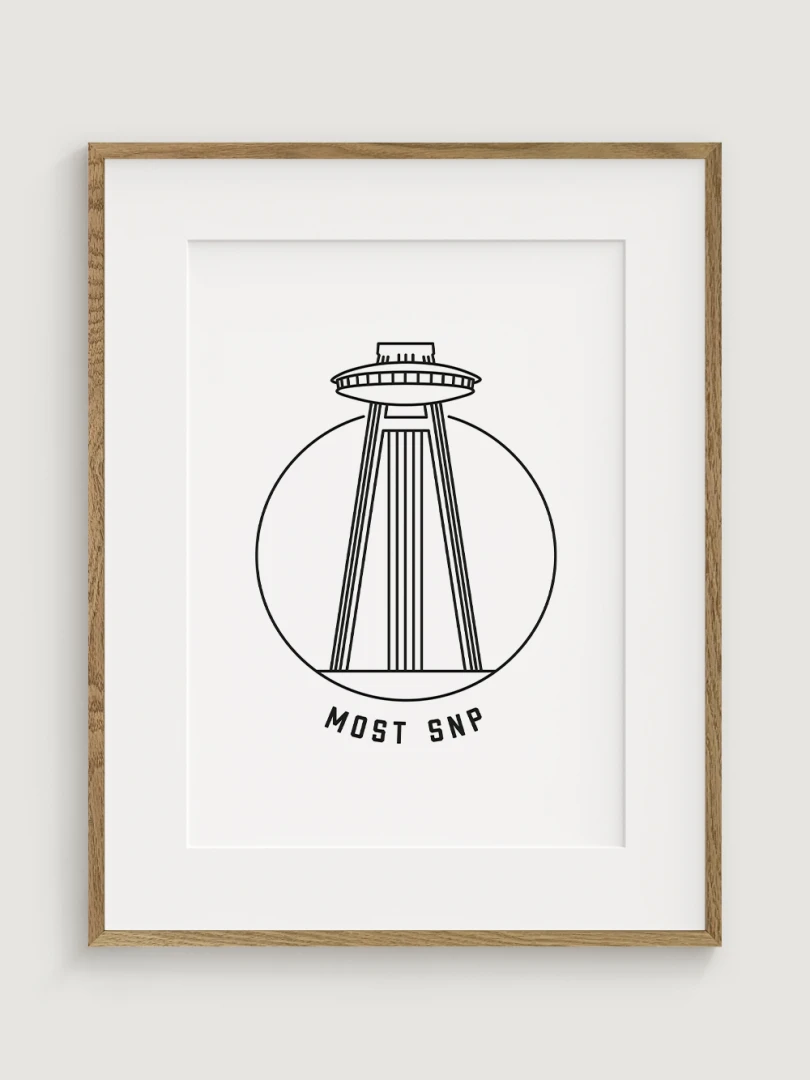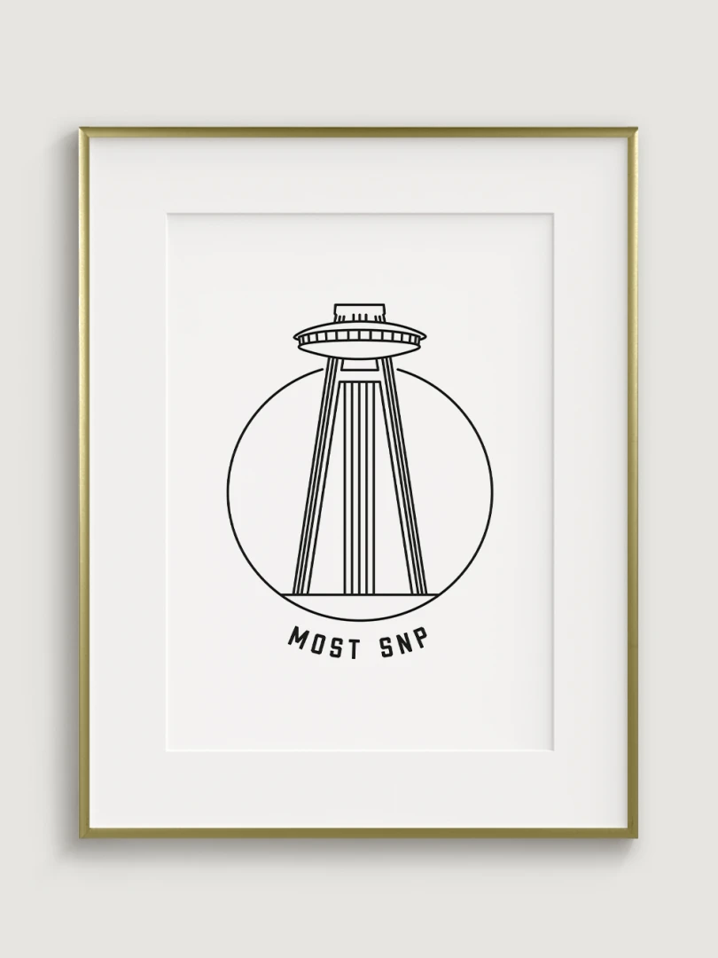 Tento umelecký kúsok štýlovo zobrazuje ikonický Most SNP, ktorý je známy svojou vyhliadkovou vežou pripomínajúcou UFO, prostredníctvom elegantného, lineárneho dizajnu, ktorý zachytáva podstatu minimalizmu.Ideálne pre tých, ktorí oceňujú modernú architektúru a dizajn, tento kúsok sa stane výrazným prvkom v každej miestnosti.