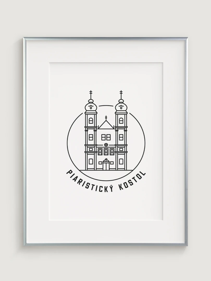 Tento minimalistický print štýlovo zobrazuje Piaristický Kostol v Trenčíne, impozantnú barokovú stavbu, ktorá patrí medzi najvýznamnejšie historické dominanty mesta. Detailný dizajn zvýrazňuje jeho charakteristické architektonické prvky a pripomína bohatú tradíciu piaristického rádu v Trenčíne. Perfektný pre milovníkov histórie, sakrálnej architektúry a kultúrneho dedičstva, tento kúsok dodá vášmu priestoru nádych elegancie a histórie.