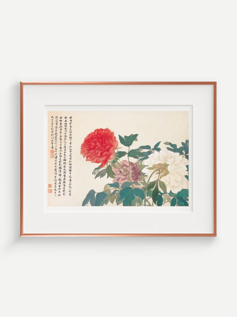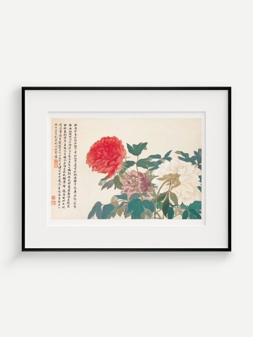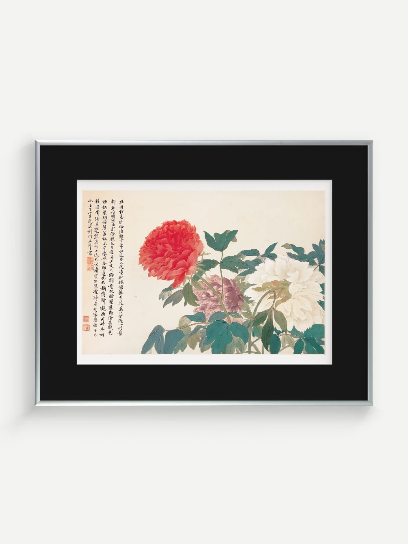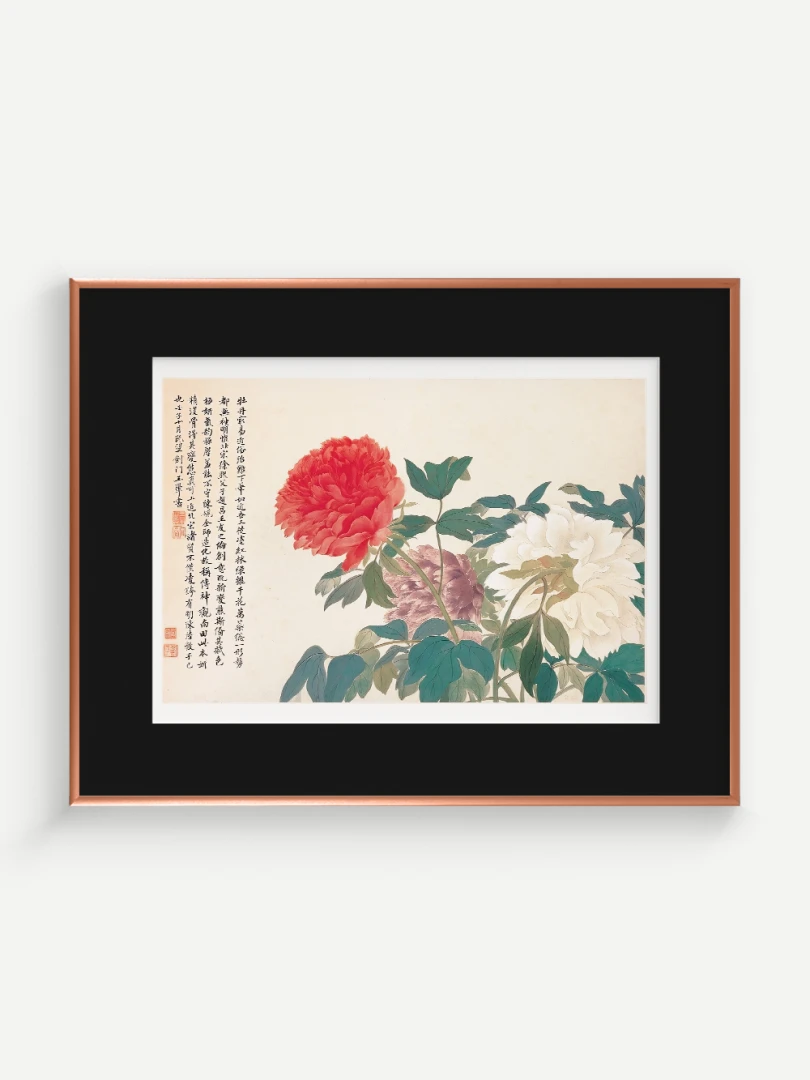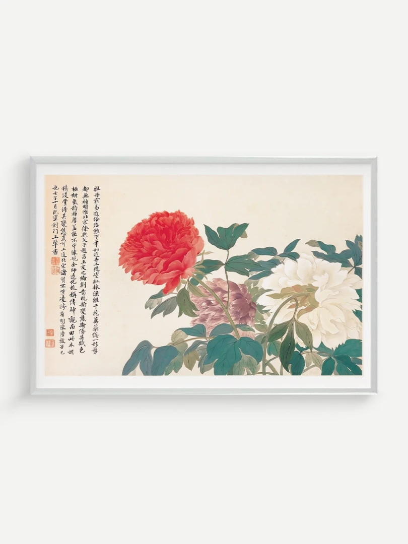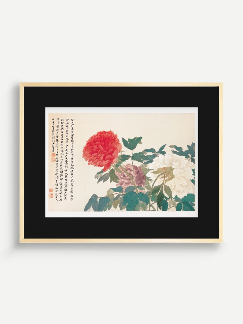 Tento nádherný umelecký print zachytáva pivonky v ich plnej kráse, tak ako ich v 17. storočí majstrovsky zobrazil čínsky umelec Yun Shouping. Bol jedným z najvýznamnejších predstaviteľov kvitnúcich štetcových malieb (huaniao) v období dynastie Čching a preslávil sa svojou schopnosťou zachytiť prírodnú krásu s jemnosťou a ľahkosťou.