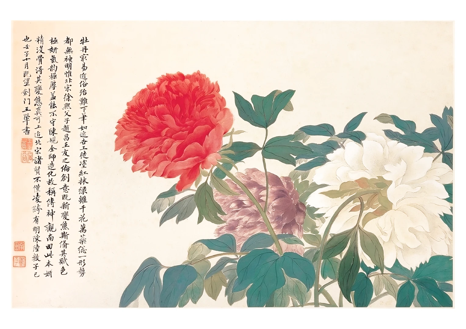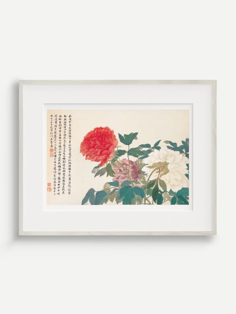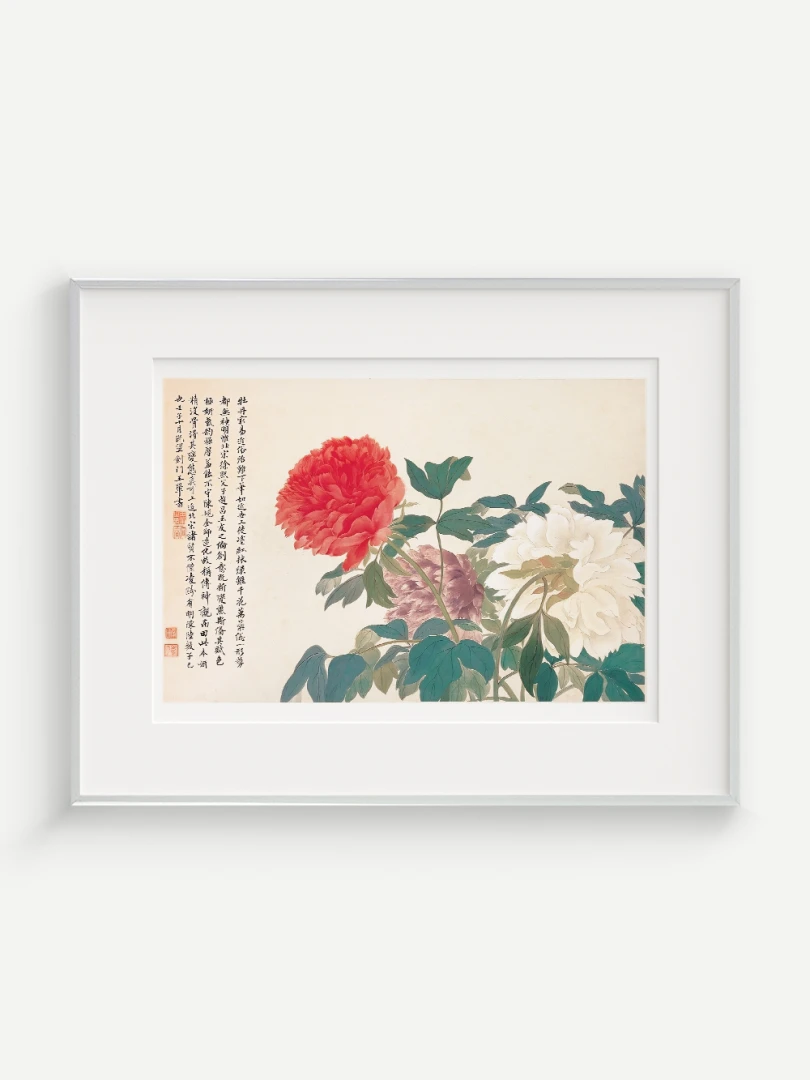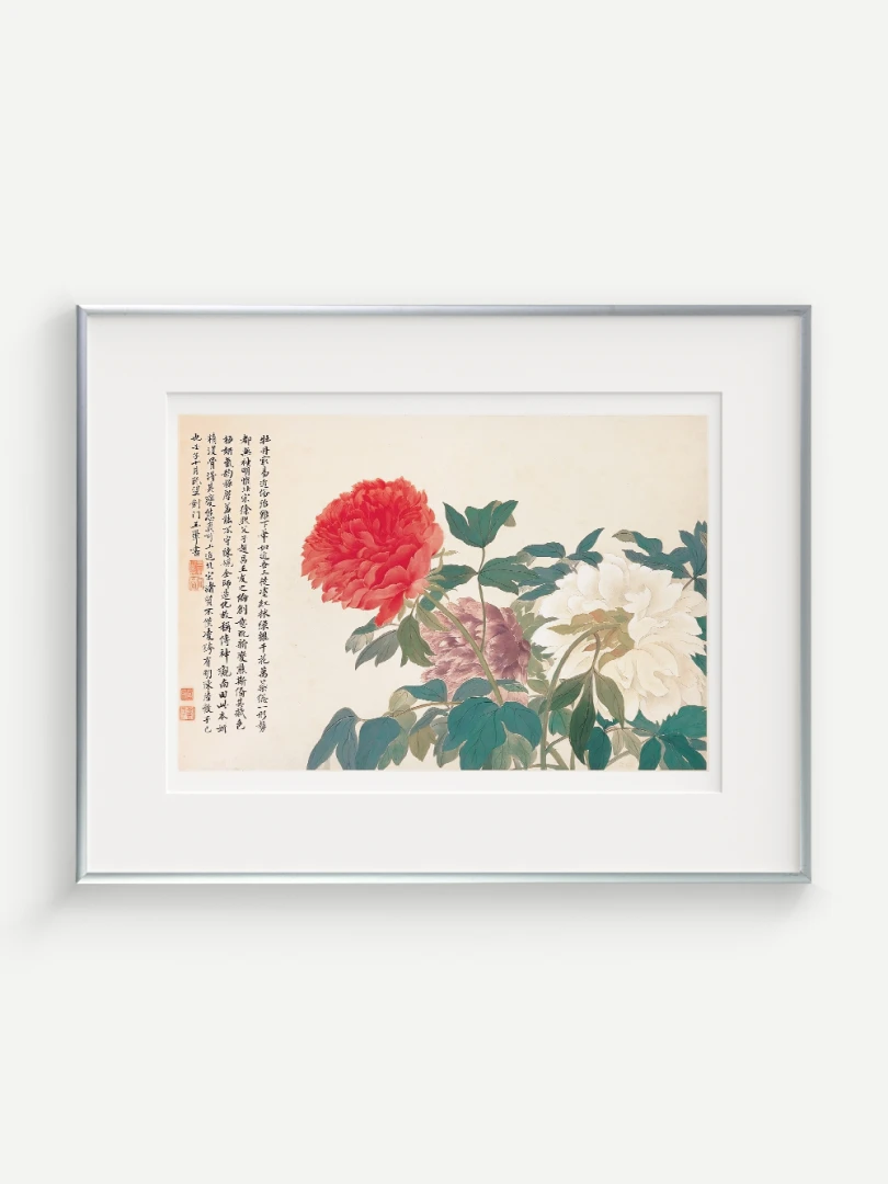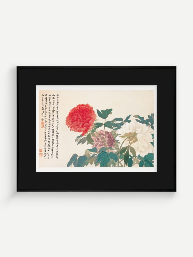 Tento nádherný umelecký print zachytáva pivonky v ich plnej kráse, tak ako ich v 17. storočí majstrovsky zobrazil čínsky umelec Yun Shouping. Bol jedným z najvýznamnejších predstaviteľov kvitnúcich štetcových malieb (huaniao) v období dynastie Čching a preslávil sa svojou schopnosťou zachytiť prírodnú krásu s jemnosťou a ľahkosťou.