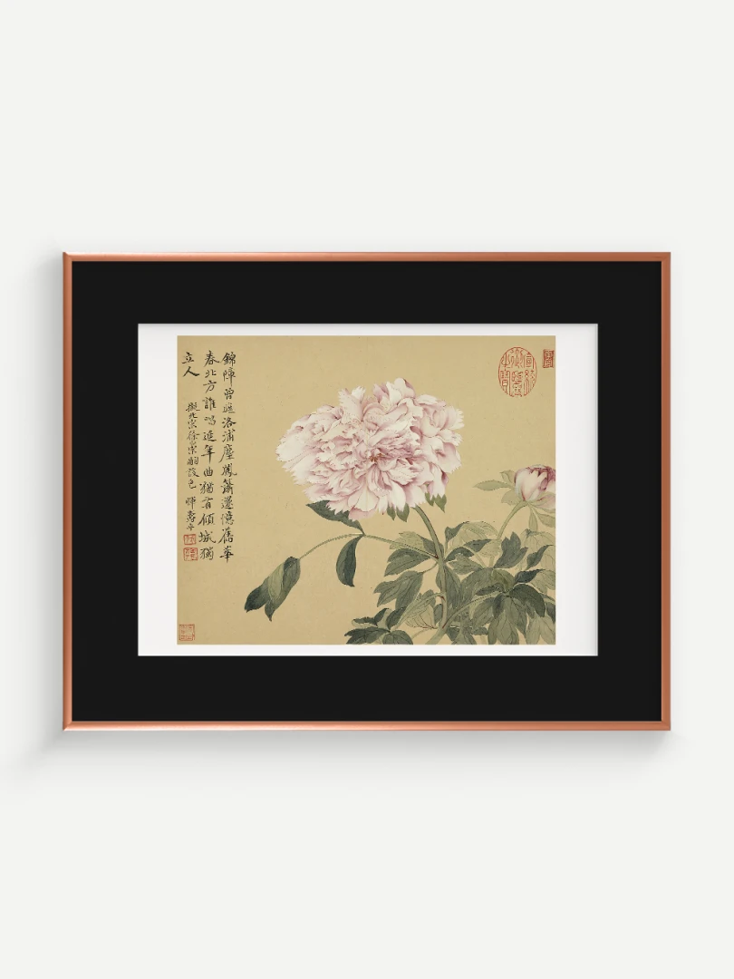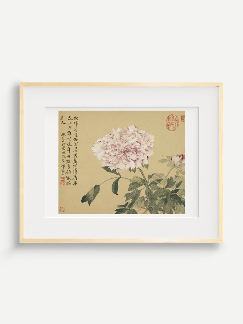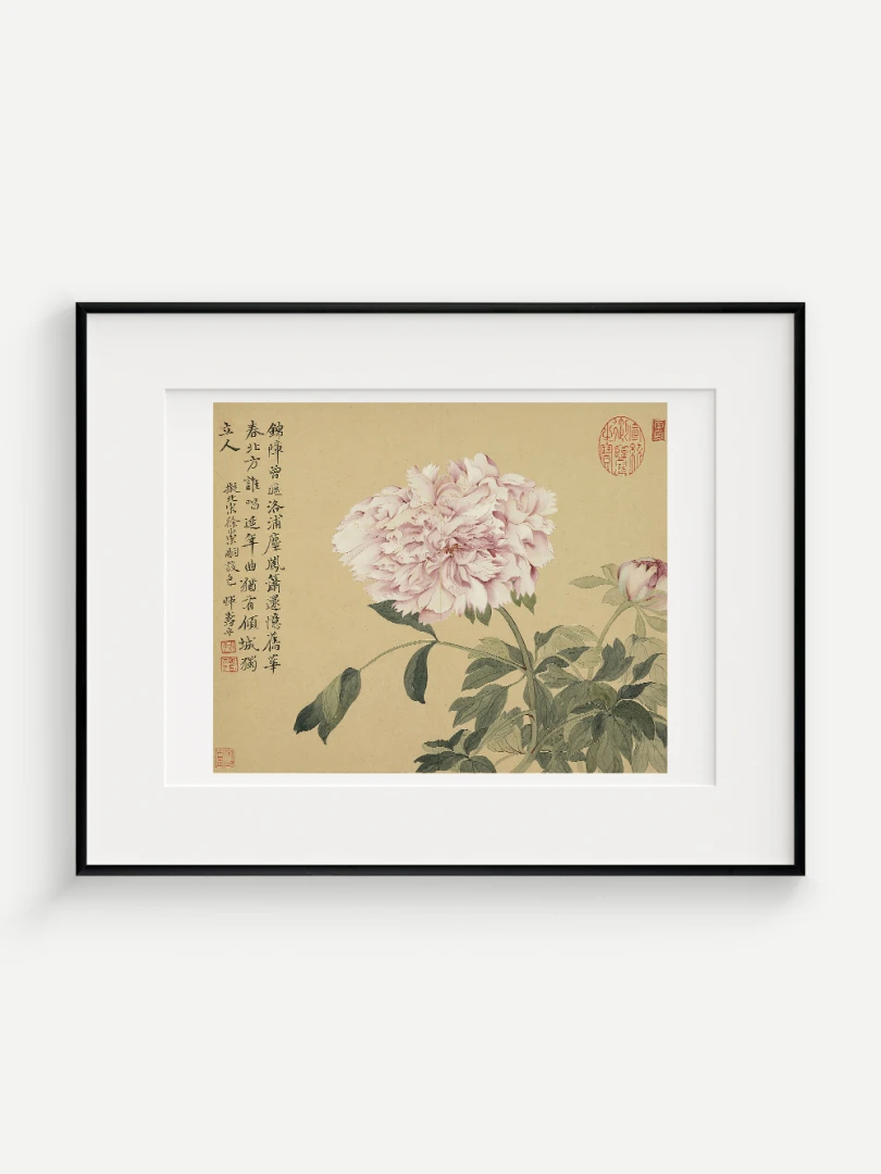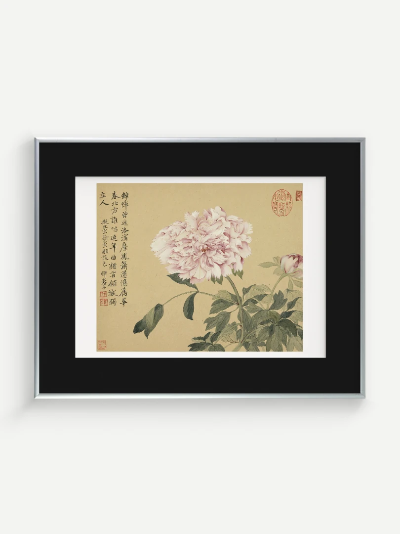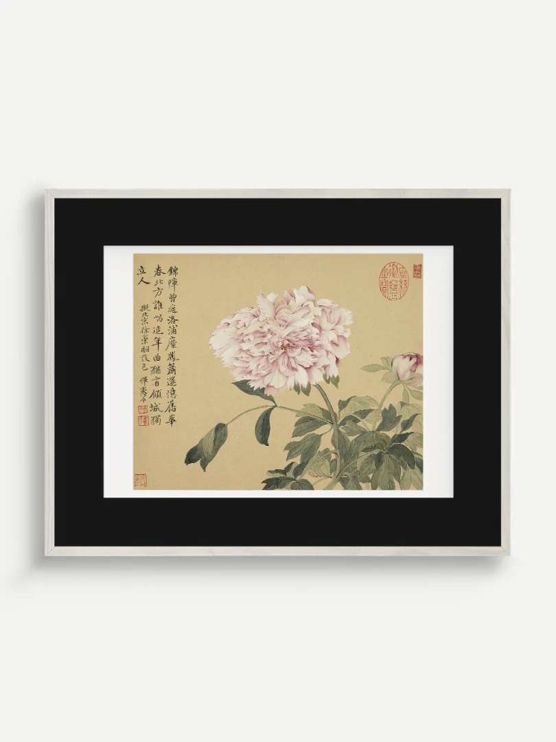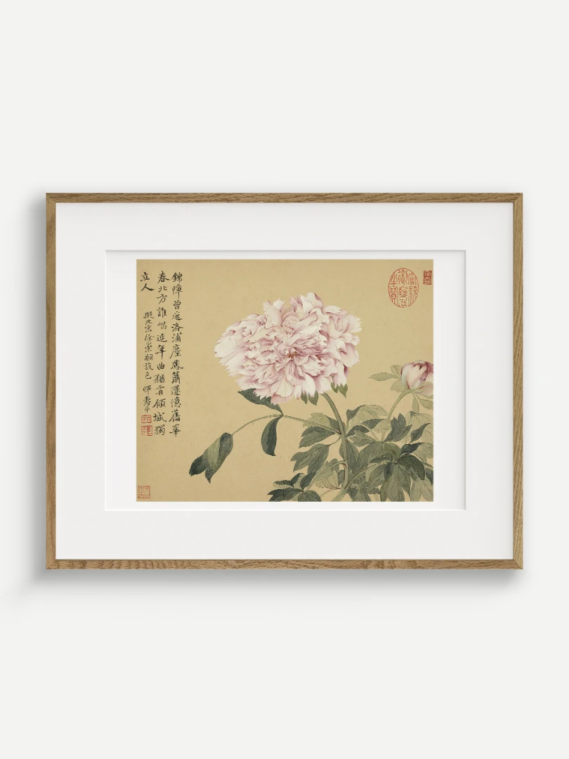 Tento nádherný umelecký print zachytáva pivonky v ich plnej kráse, tak ako ich v 17. storočí majstrovsky zobrazil čínsky umelec Yun Shouping. Bol jedným z najvýznamnejších predstaviteľov kvitnúcich štetcových malieb (huaniao) v období dynastie Čching a preslávil sa svojou schopnosťou zachytiť prírodnú krásu s jemnosťou a ľahkosťou.