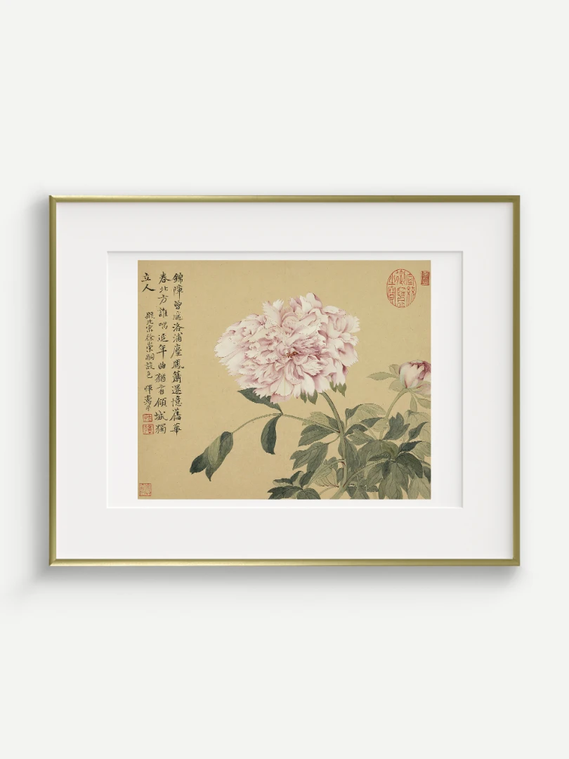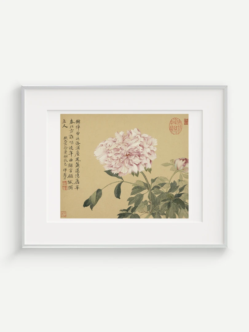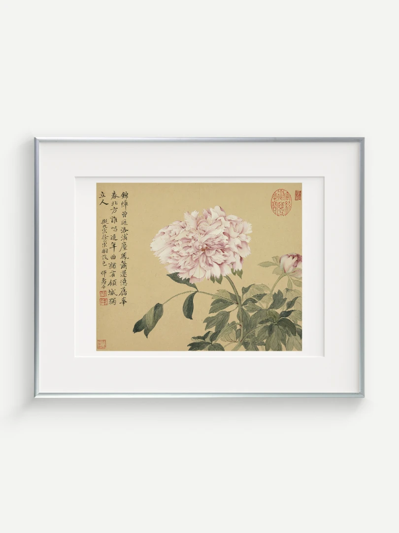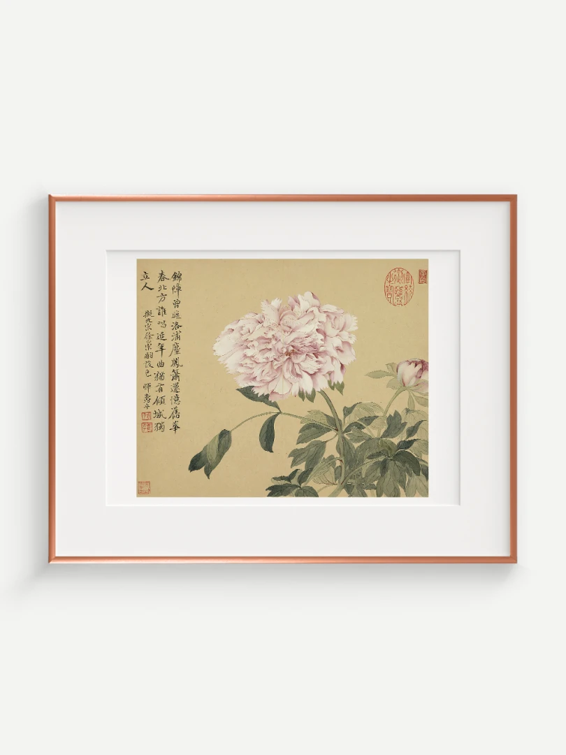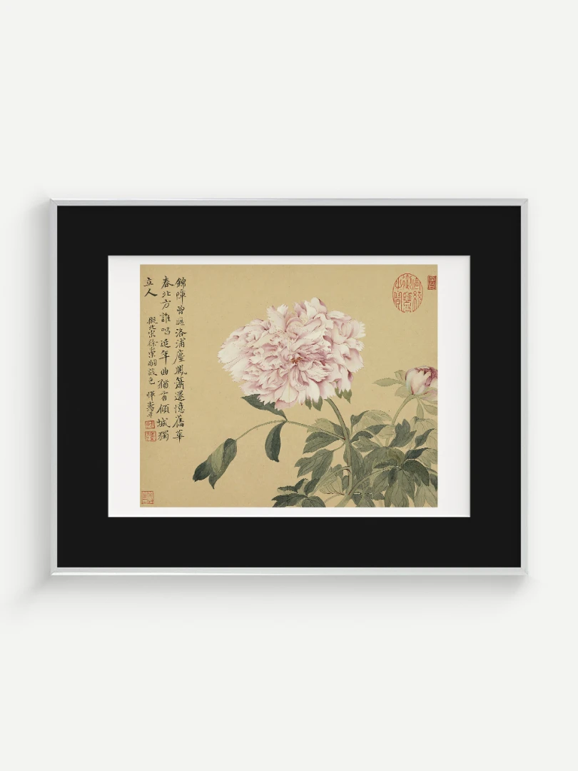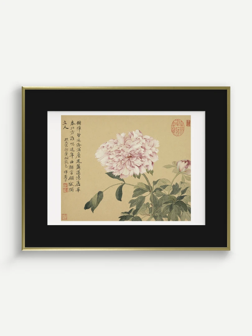 Tento nádherný umelecký print zachytáva pivonky v ich plnej kráse, tak ako ich v 17. storočí majstrovsky zobrazil čínsky umelec Yun Shouping. Bol jedným z najvýznamnejších predstaviteľov kvitnúcich štetcových malieb (huaniao) v období dynastie Čching a preslávil sa svojou schopnosťou zachytiť prírodnú krásu s jemnosťou a ľahkosťou.