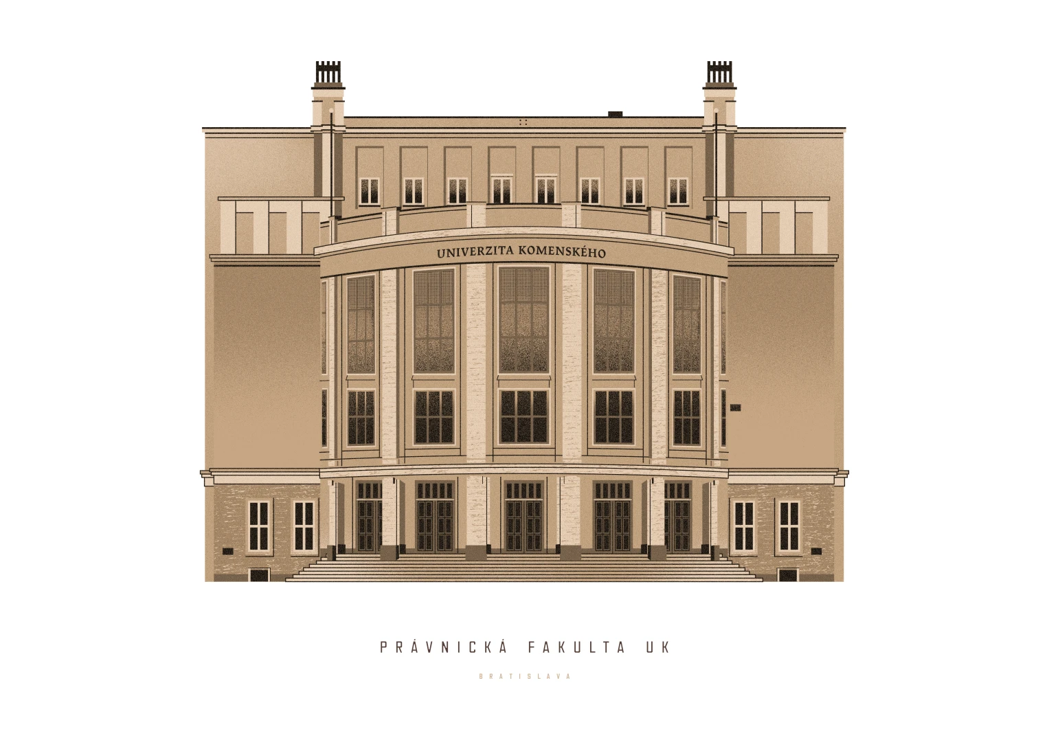 Budova Univerzity Komenského, v ktorej aktuálne sídli Právnická fakulta, bola pôvodne projektovaná na celkom iné využitie. Začiatkom 30. rokov bolo rozhodnuté, že na pozemkoch, kde dovtedy stáli obytné domy, daňový úrad a hostinec, vznikne Štátny obchodný dom v Bratislave. Projektom bol poverený František Krupka. Už počas výstavby začal vtedajší rektor UK, Antonín Kolář, bojovať o budovu pre účely školy a to intervenciami na najvyšších miestach. V roku 1935 bolo definitívne rozhodnuté o pridelení budovy Právnickej a Filozofickej fakulte. Slávnostné otvorenie budovy sa uskutočnilo 11.3.1937 a od tohto dátumu budova nepretržite slúži Univerzite Komenského.