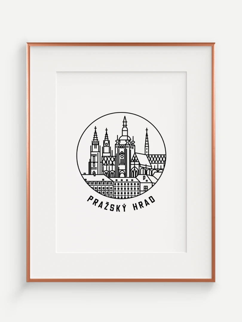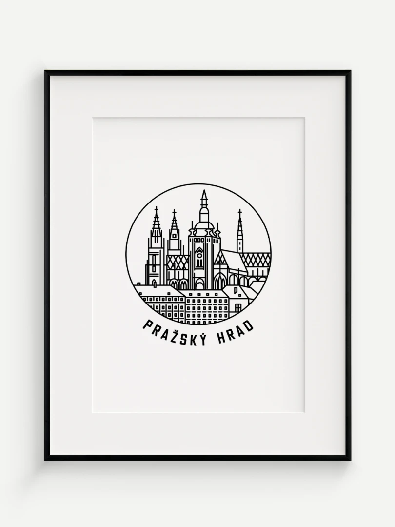 Tento print predstavuje štýlizované, minimalistické zobrazenie Pražského hradu, ktorý spája historickú krásu s impozantným dizajnom. Vypracovaný s jemnou čiernou linkovou kresbou na kvalitnom papieri, táto ilustrácia zachytáva silné línie a majestátnosť hradu v nadčasovom a elegantnom štýle.