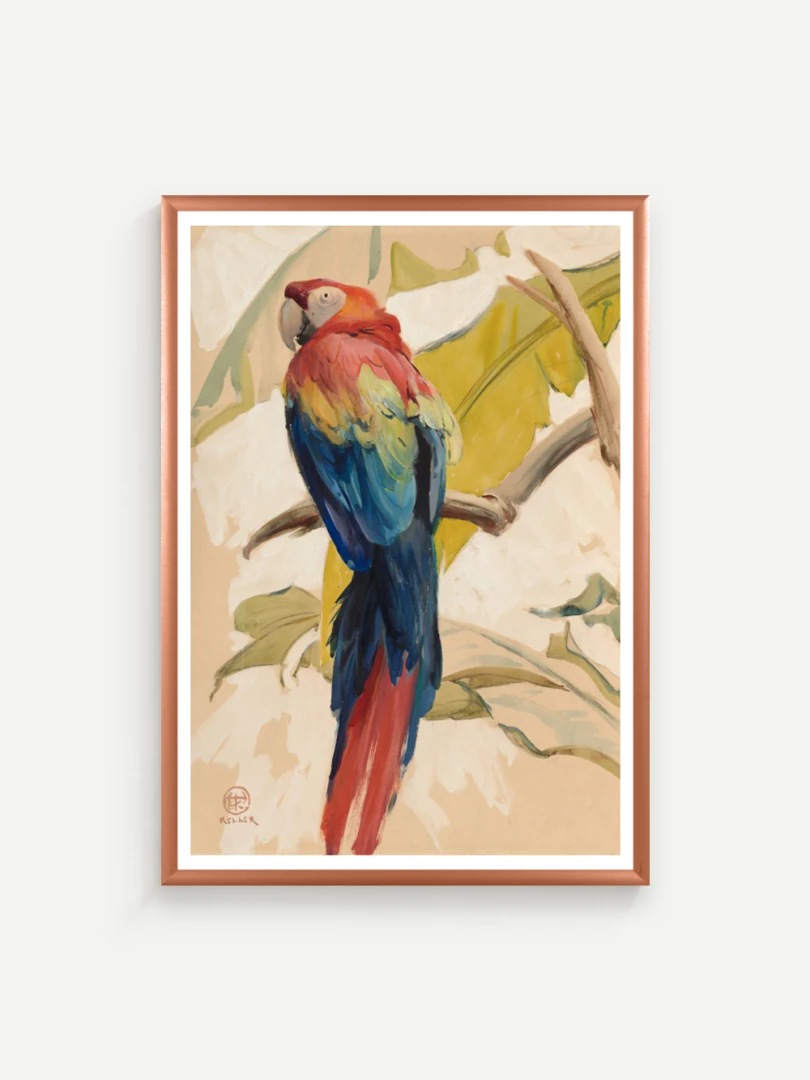 Tento print je ideálny pre interiéry, ktoré oceňujú spojenie prírody a umenia. Skvelo sa hodí do obývačky, pracovne alebo čitárne, kde môže pôsobiť ako výrazný a zároveň elegantný prvok. Jeho farebnosť a výraz papagája zaujmú na prvý pohľad a dodajú priestoru osobitý charakter.