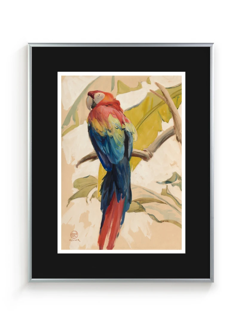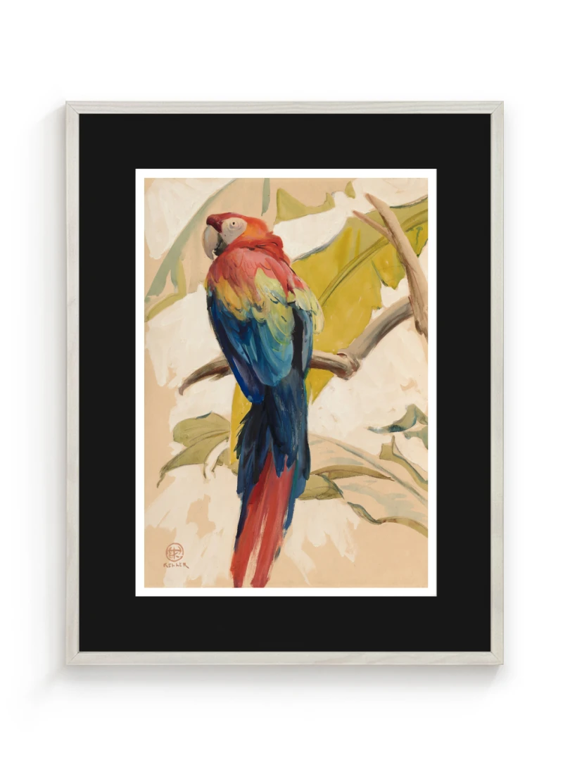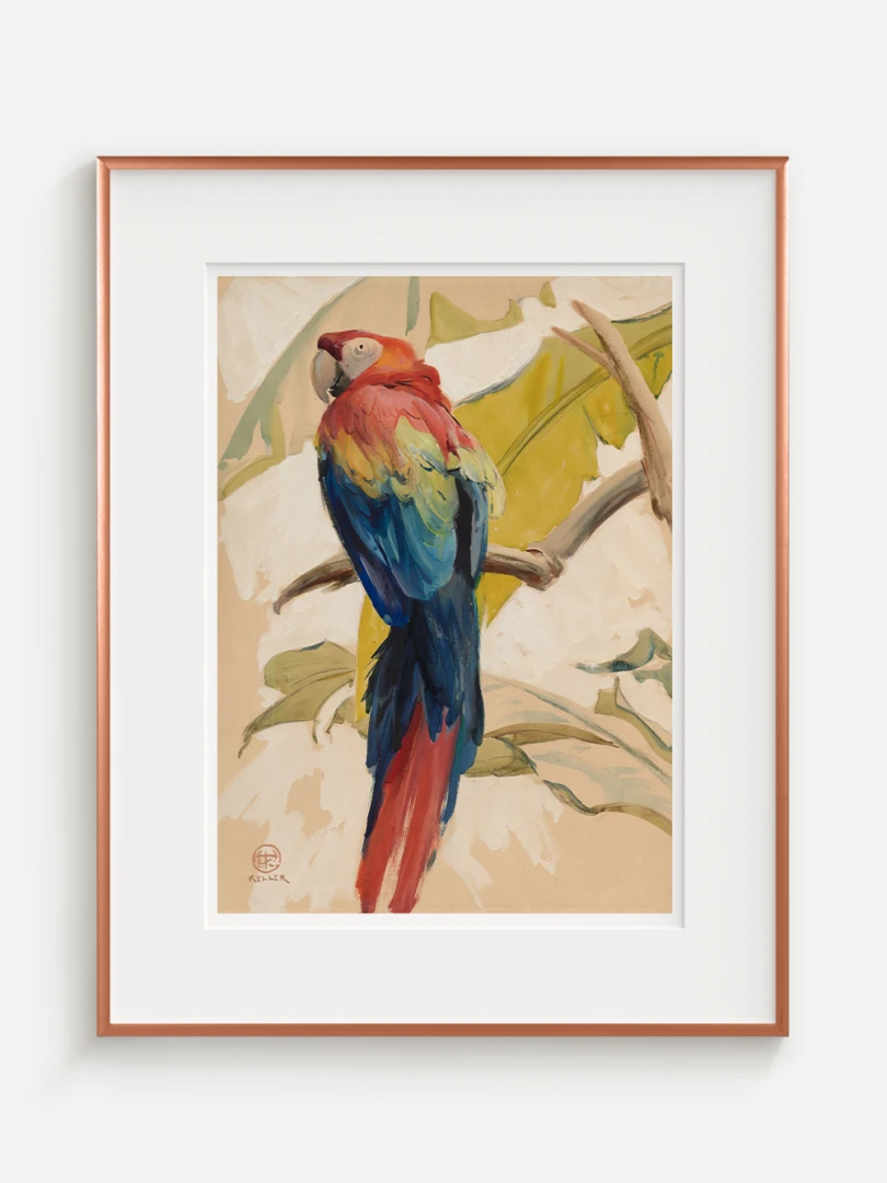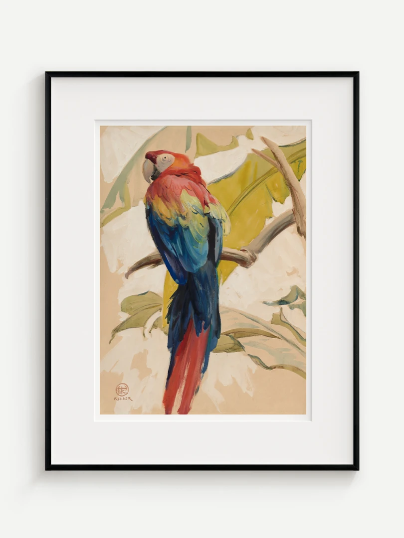 Tento print vychádza z akvarelu Starý mrzút (Old Grumpy), ktorý v roku 1926 vytvoril americký umelec Henry Keller. Dielo zobrazuje papagája s výrazným pohľadom, ktorý odráža jeho prezývku. Keller, známy svojimi akvarelovými prácami, zachytil detaily operenia a postoj vtáka s precíznosťou a citom pre farbu.