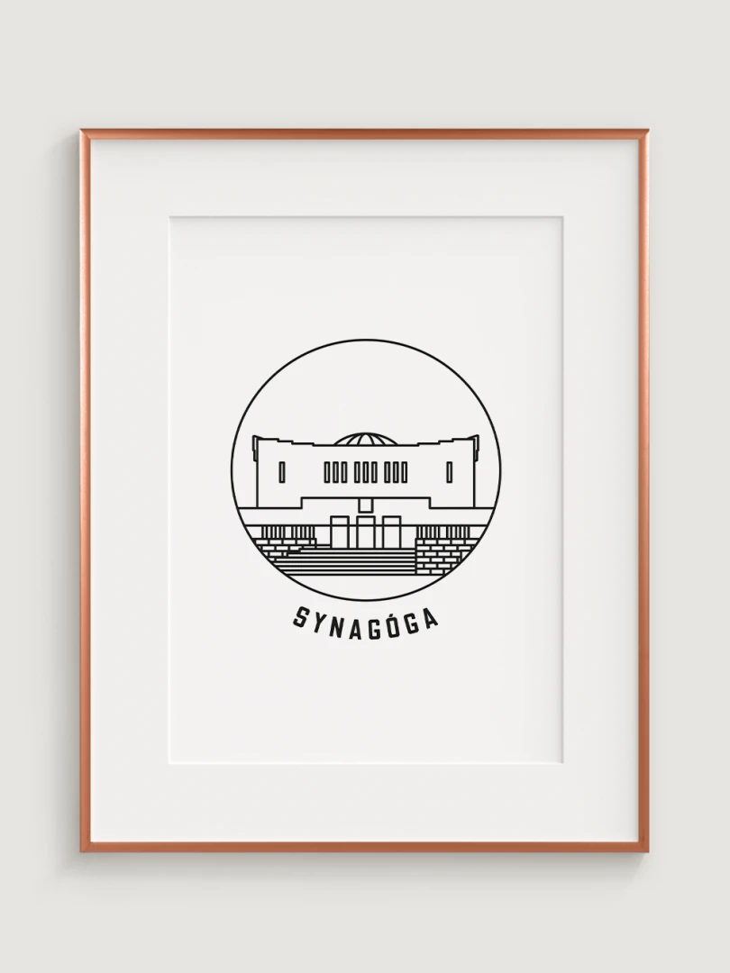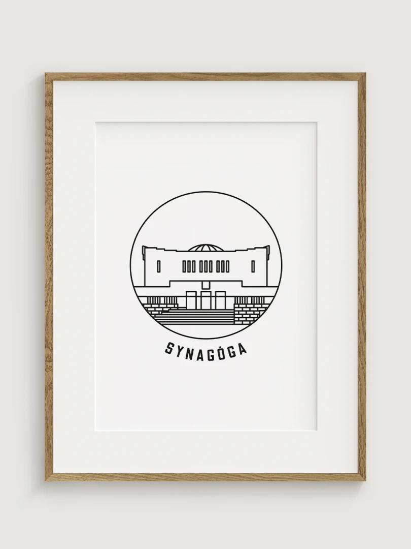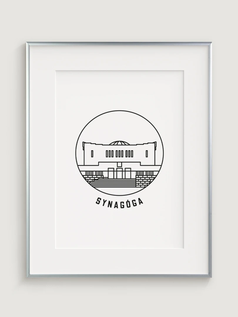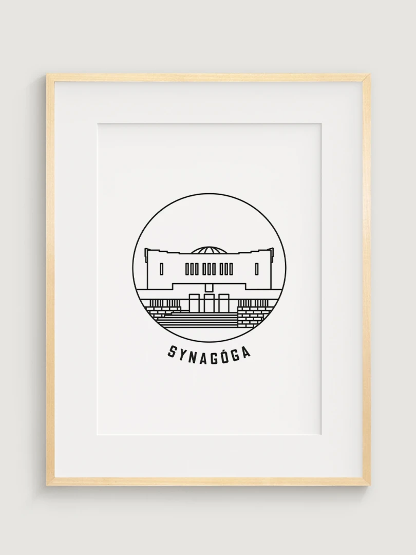 Tento print predstavuje štýlizované, minimalistické zobrazenie Synagógy v Žiline, budovy, ktorá spája historickú krásu a jedinečný architektonický štýl. Vypracovaný s jemnou čiernou linkovou kresbou na kvalitnom papieri, táto ilustrácia zachytáva detailné línie a formy synagógy v nadčasovom a elegantnom štýle.