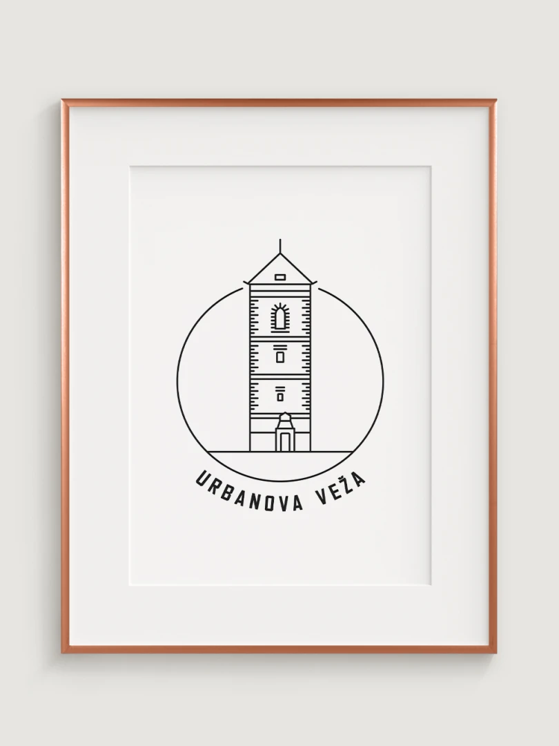 Tento print predstavuje štýlizované, minimalistické zobrazenie Urbanovej veže v Košiciach, historickej budovy, ktorá spája stredovekú krásu s moderným pohľadom na architektúru. Vypracovaný s precíznou čiernou linkovou kresbou na kvalitnom papieri, táto ilustrácia zachytáva detailné línie a formy veže v nadčasovom a elegantnom štýle.