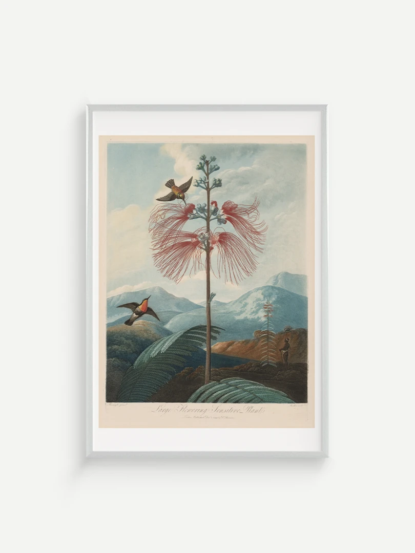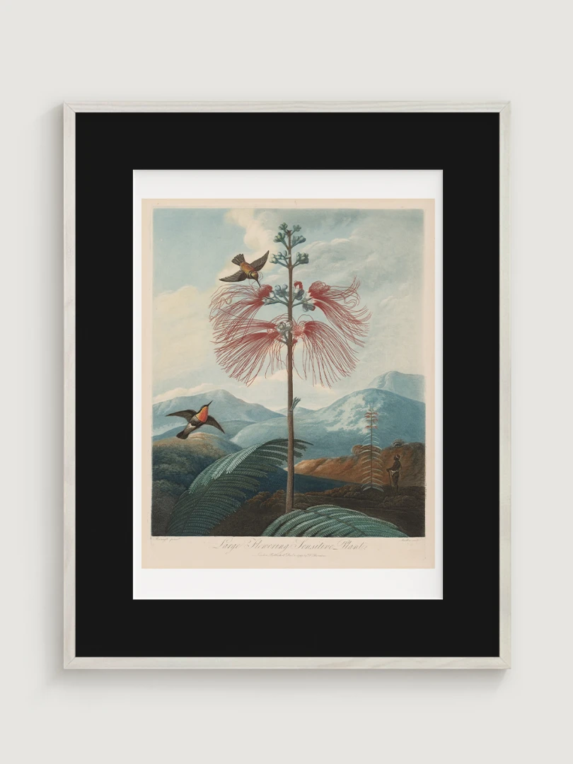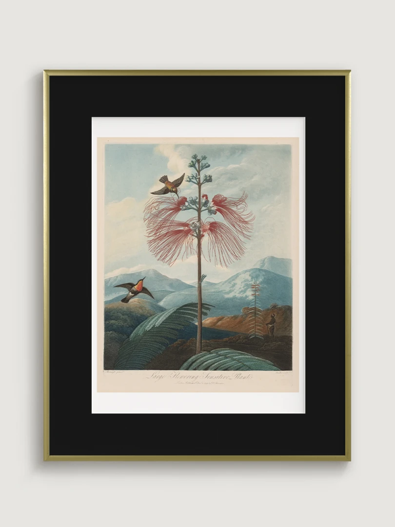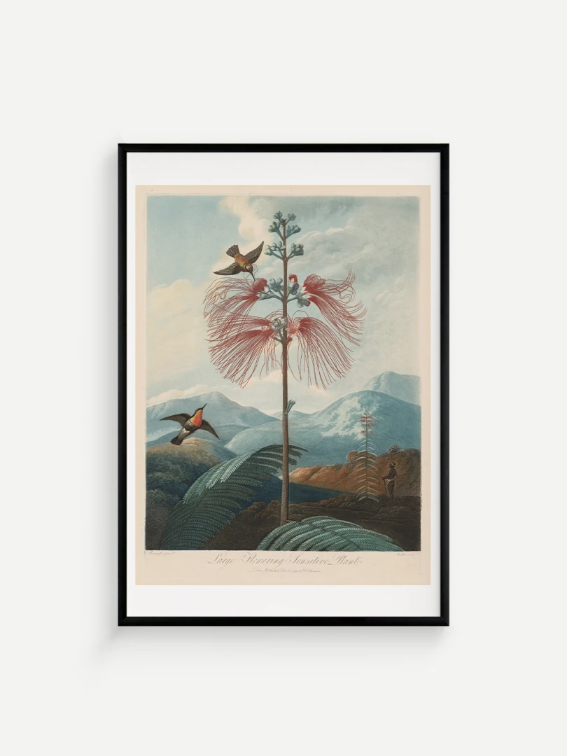 „Veľká kvitnúca citlivá rastlina“ je fascinujúcim príkladom spojenia vedy a umenia. Aj keď zobrazuje rastlinu s realistickou presnosťou, jej pozadie je fantazijnou kompozíciou, inšpirovanou britskými koloniálnymi výpravami. Bohaté detaily kvetov, jemné farebné prechody a atmosférická scenéria dodávajú tomuto dielu výnimočný vizuálny charakter.