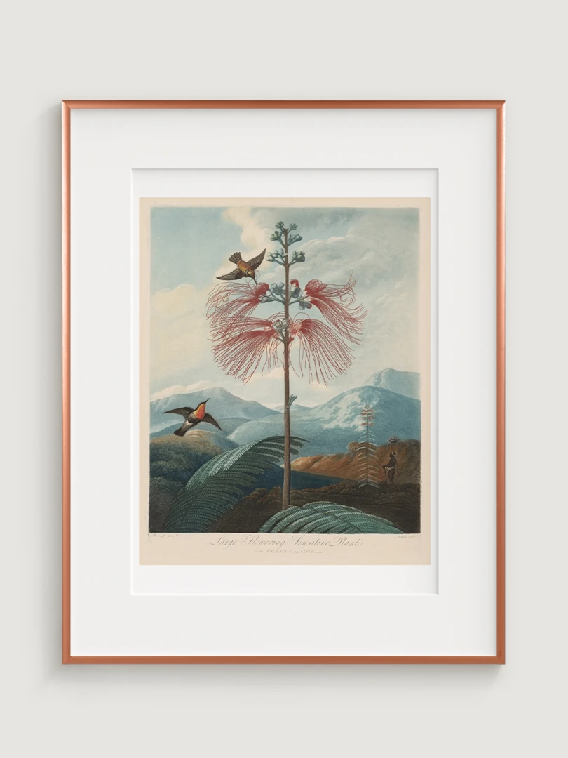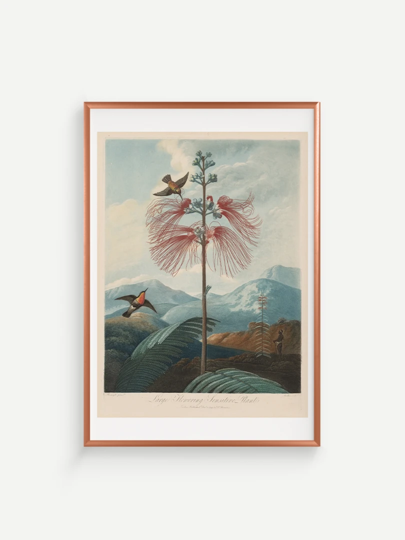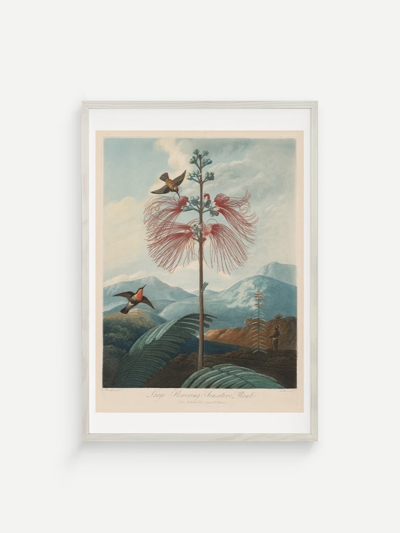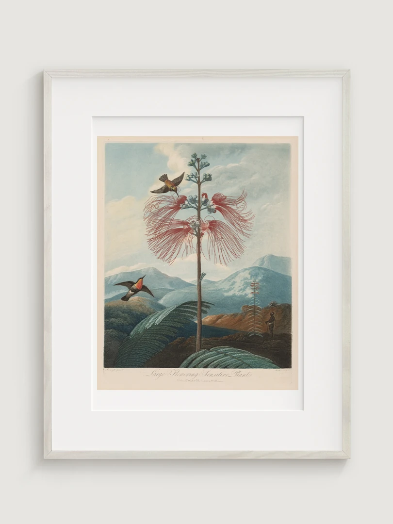 „Veľká kvitnúca citlivá rastlina“ je fascinujúcim príkladom spojenia vedy a umenia. Aj keď zobrazuje rastlinu s realistickou presnosťou, jej pozadie je fantazijnou kompozíciou, inšpirovanou britskými koloniálnymi výpravami. Bohaté detaily kvetov, jemné farebné prechody a atmosférická scenéria dodávajú tomuto dielu výnimočný vizuálny charakter.