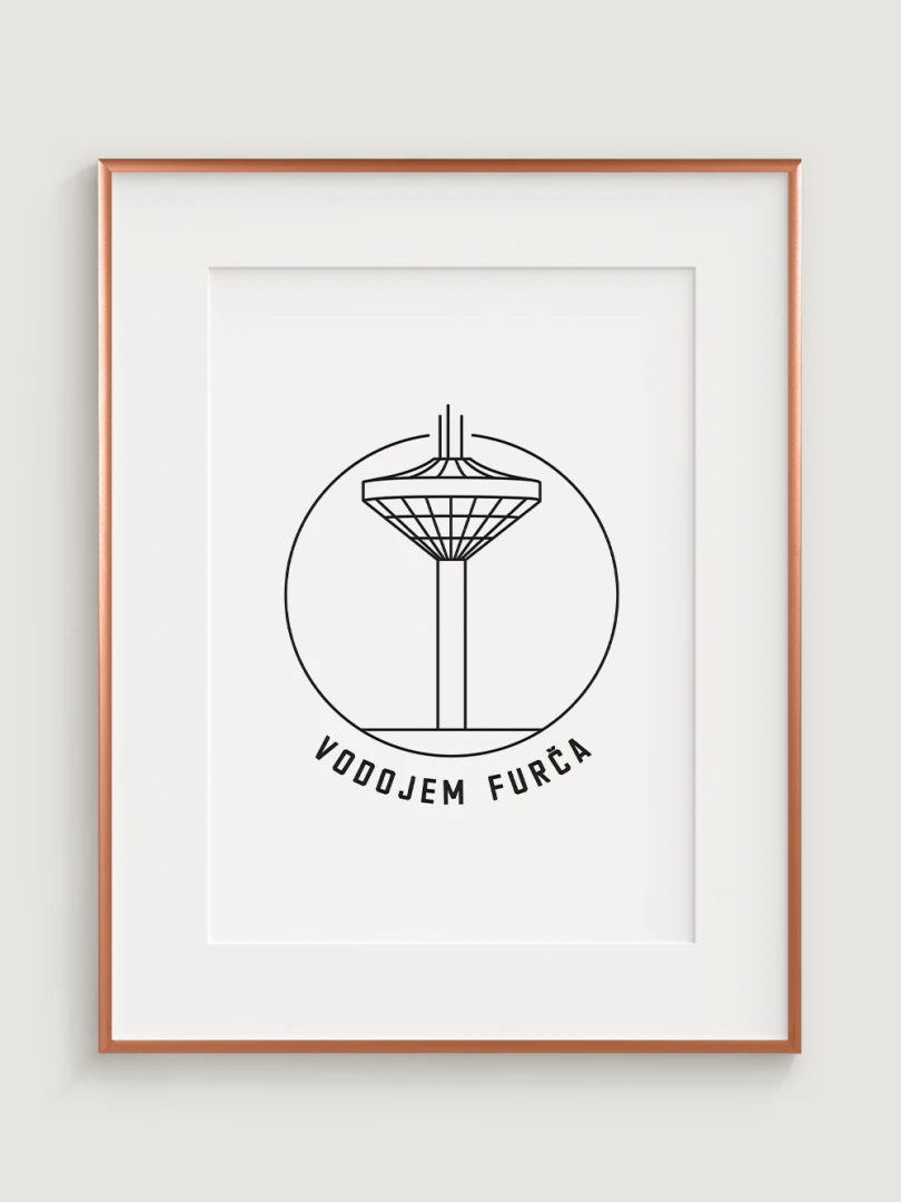 Tento print predstavuje štýlizované, minimalistické zobrazenie Vodojemu na Furči v Košiciach, technickej stavby, ktorá spája industriálny dizajn s funkčnosťou. Vypracovaný s jemnou čiernou linkovou kresbou na kvalitnom papieri, táto ilustrácia verne zachytáva silné línie a industriálny charakter vodojemu v nadčasovom štýle.