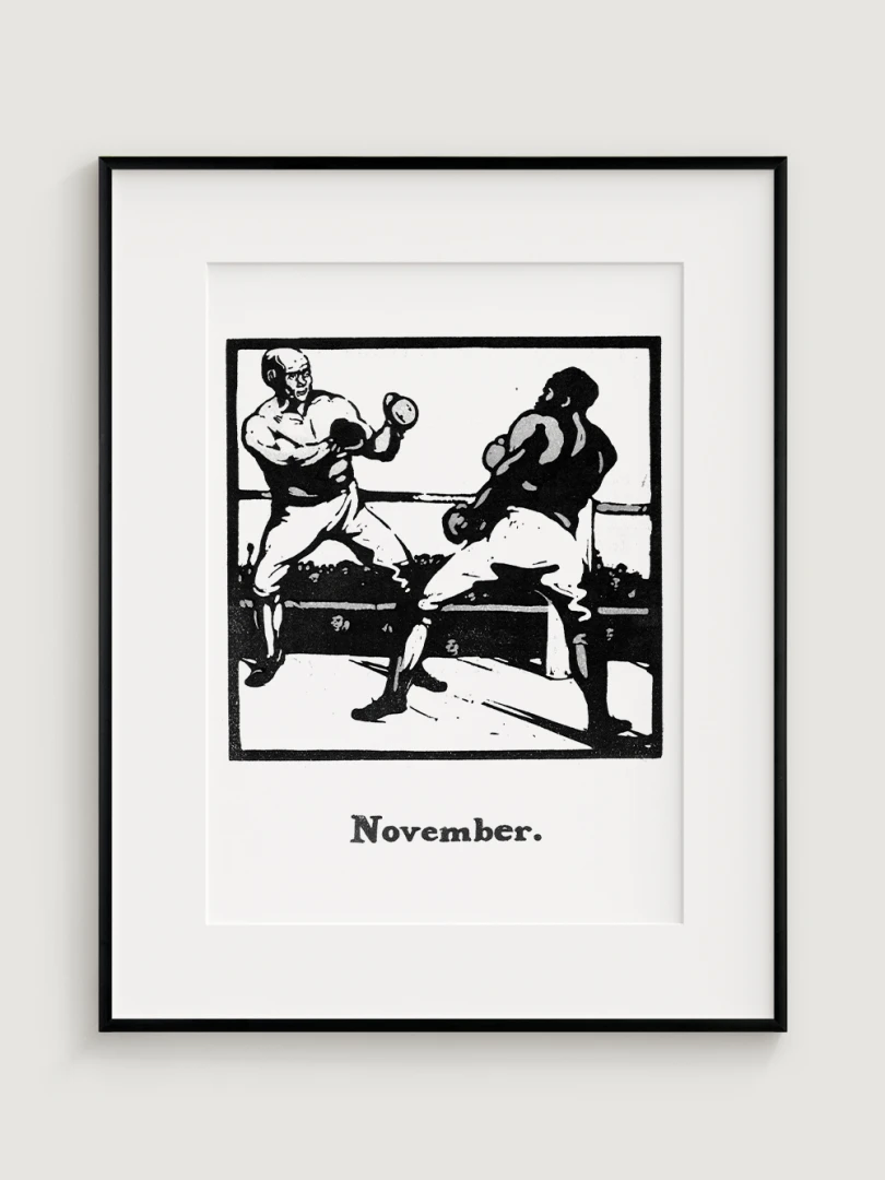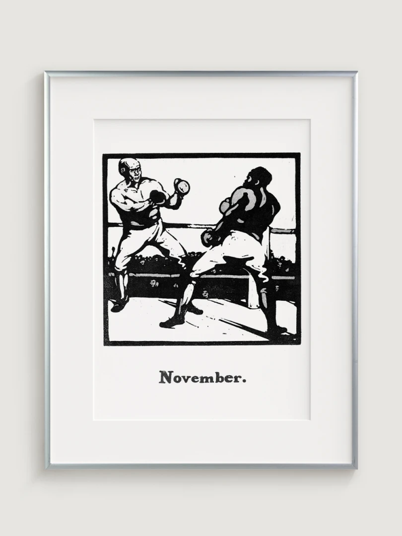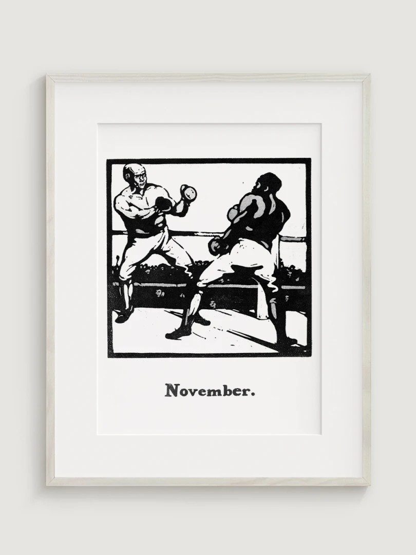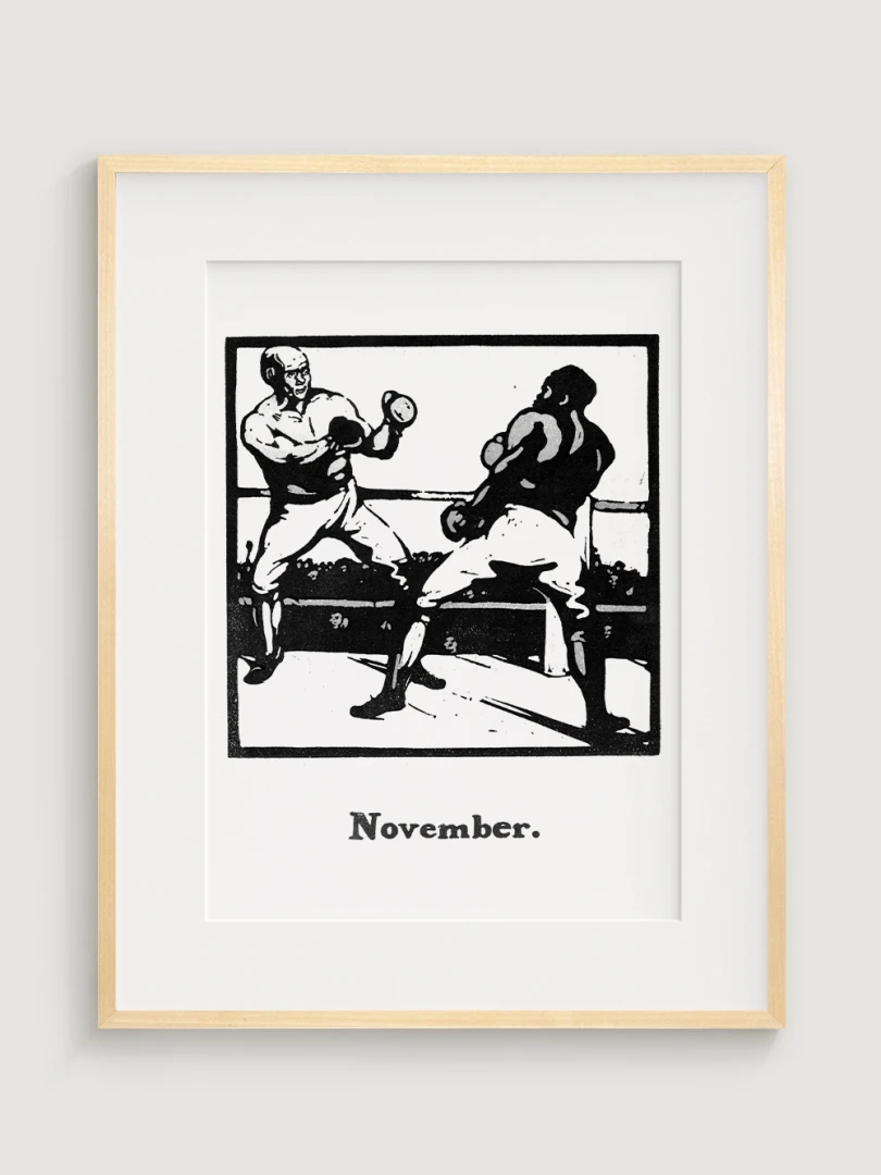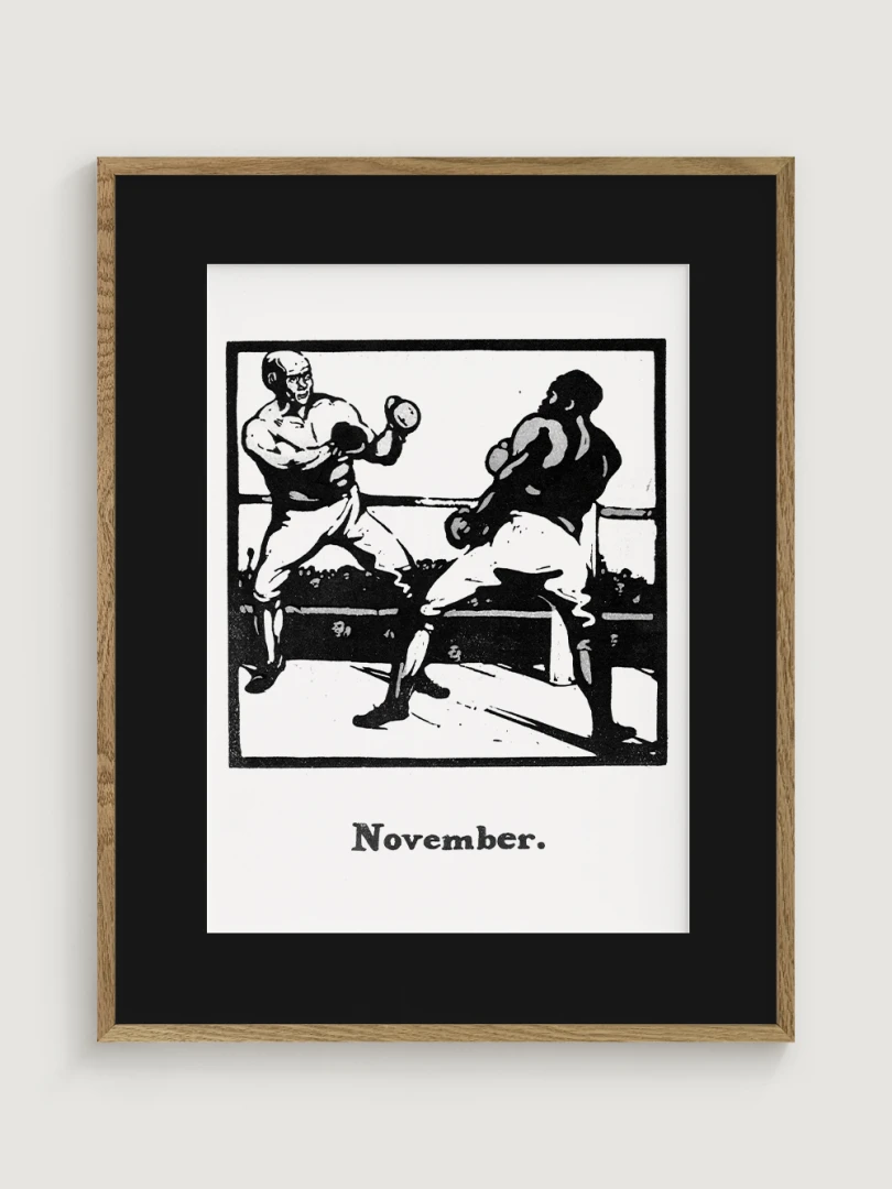Tento dynamický umelecký print Box (An Almanac of Twelve Sports: Boxing) pochádza z úspešnej série drevorezov, ktorú vytvoril William Nicholson pre vydavateľa Williama Heinemanna na prelome 19. a 20. storočia. Séria An Almanac of Twelve Sports zachytáva dvanásť tradičných britských športov a voľnočasových aktivít – každý mesiac reprezentuje jedno pohybové umenie, ktoré je pre dané obdobie typické.