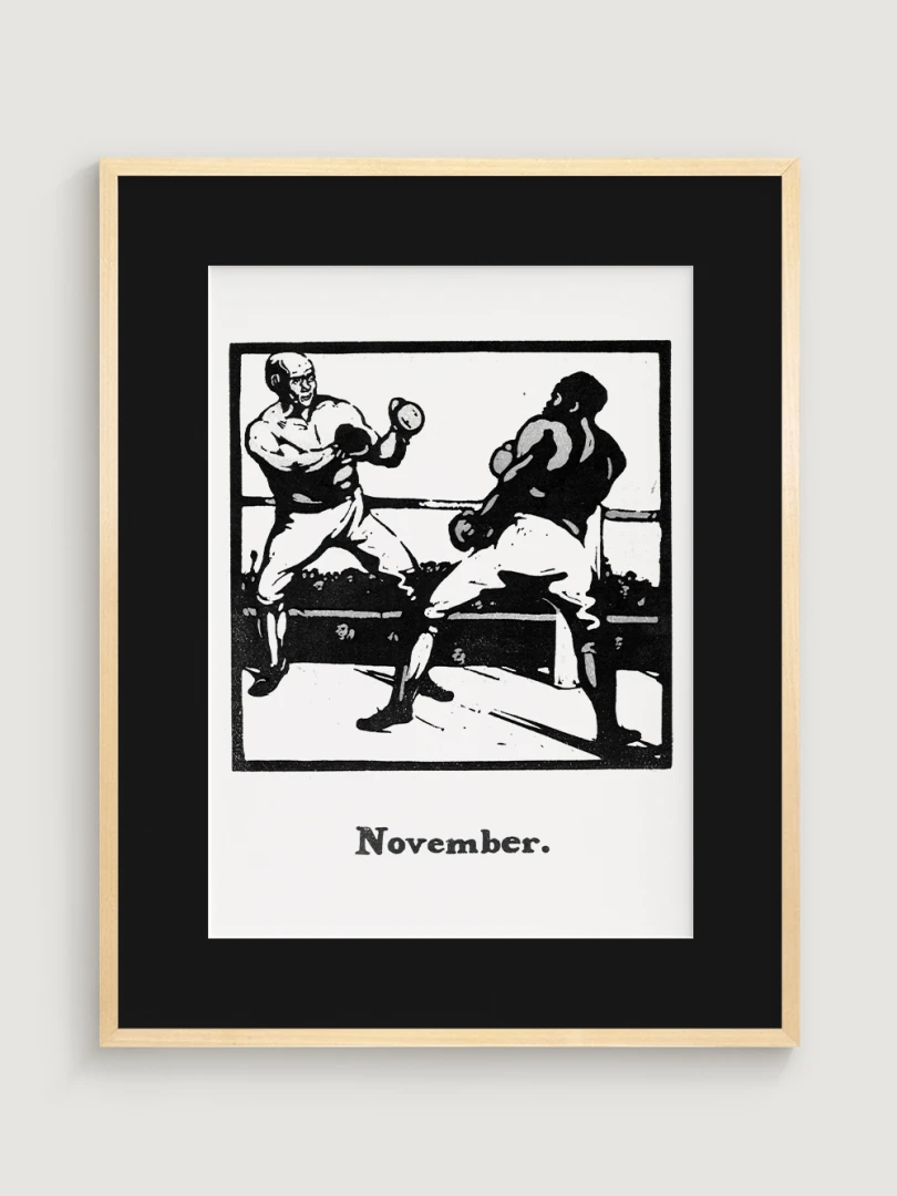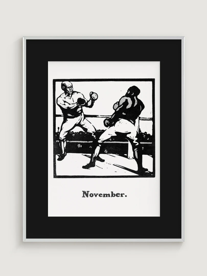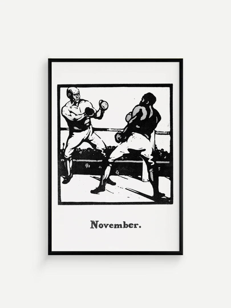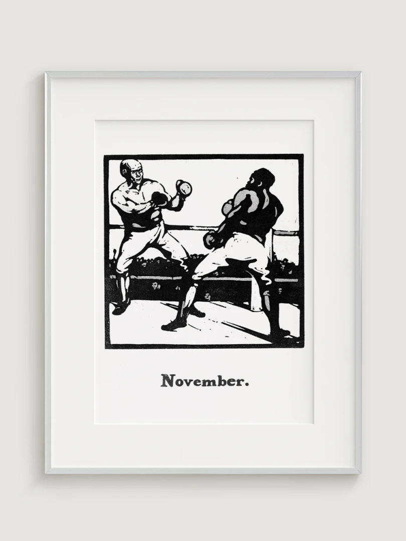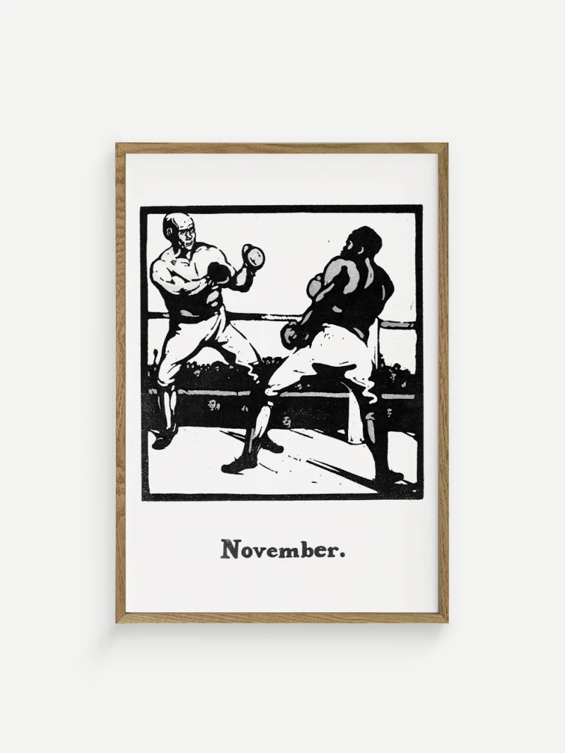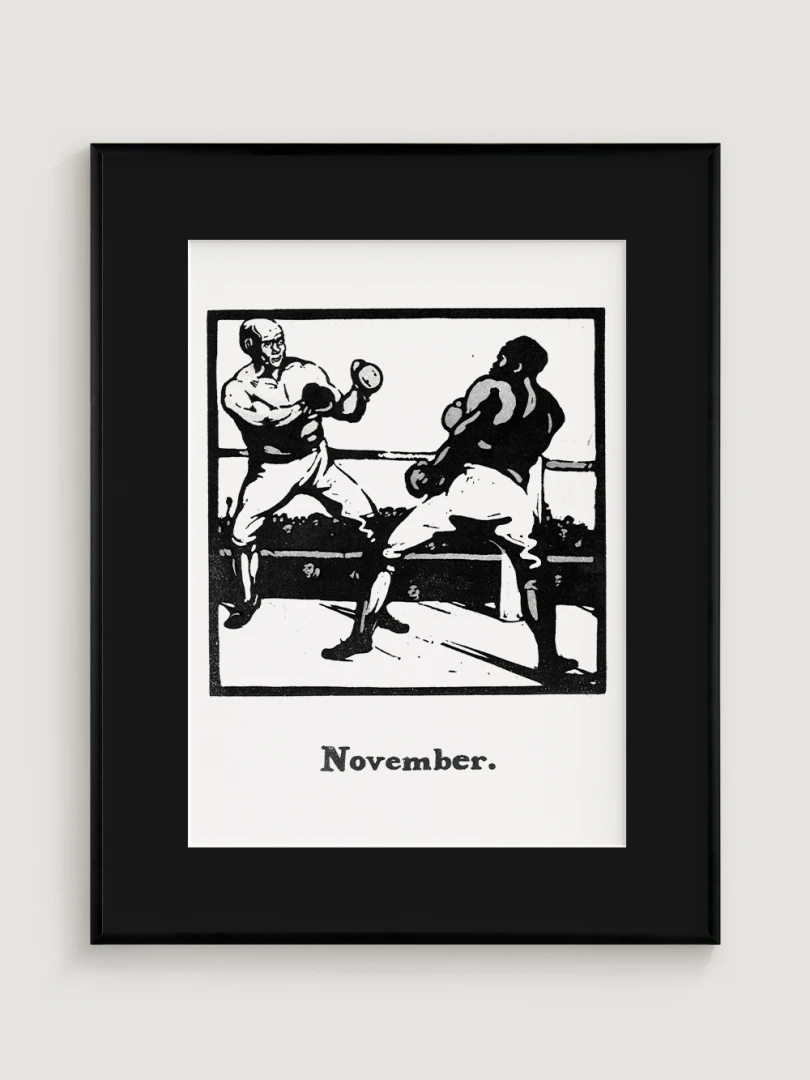 Tento dynamický umelecký print Box (An Almanac of Twelve Sports: Boxing) pochádza z úspešnej série drevorezov, ktorú vytvoril William Nicholson pre vydavateľa Williama Heinemanna na prelome 19. a 20. storočia. Séria An Almanac of Twelve Sports zachytáva dvanásť tradičných britských športov a voľnočasových aktivít – každý mesiac reprezentuje jedno pohybové umenie, ktoré je pre dané obdobie typické.