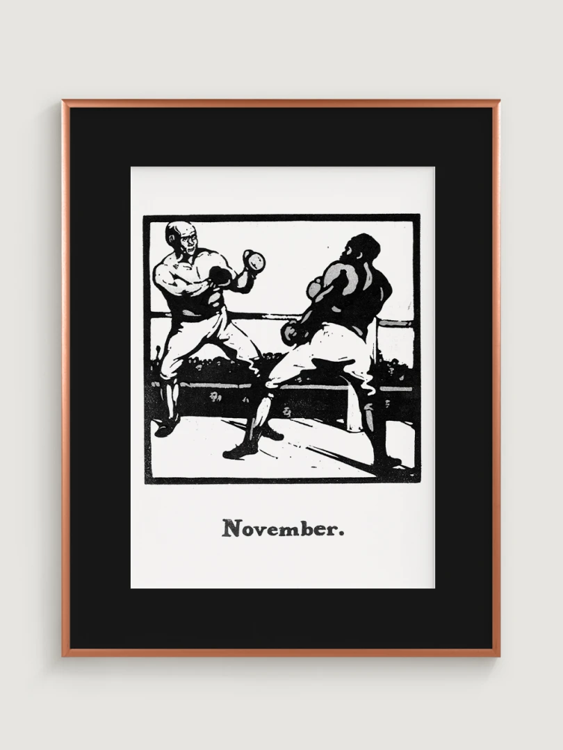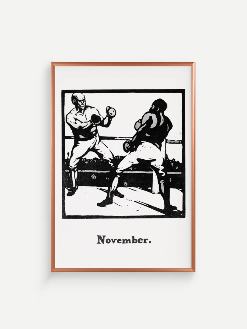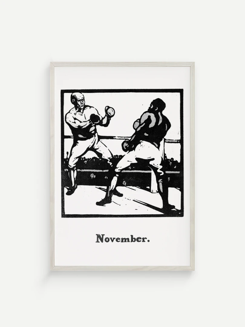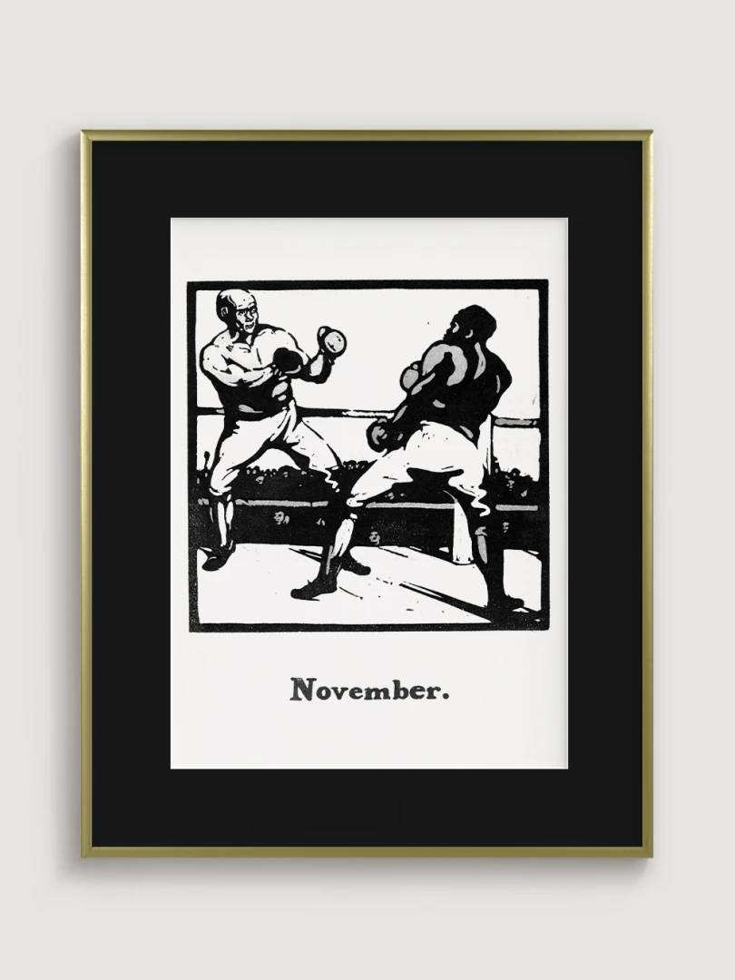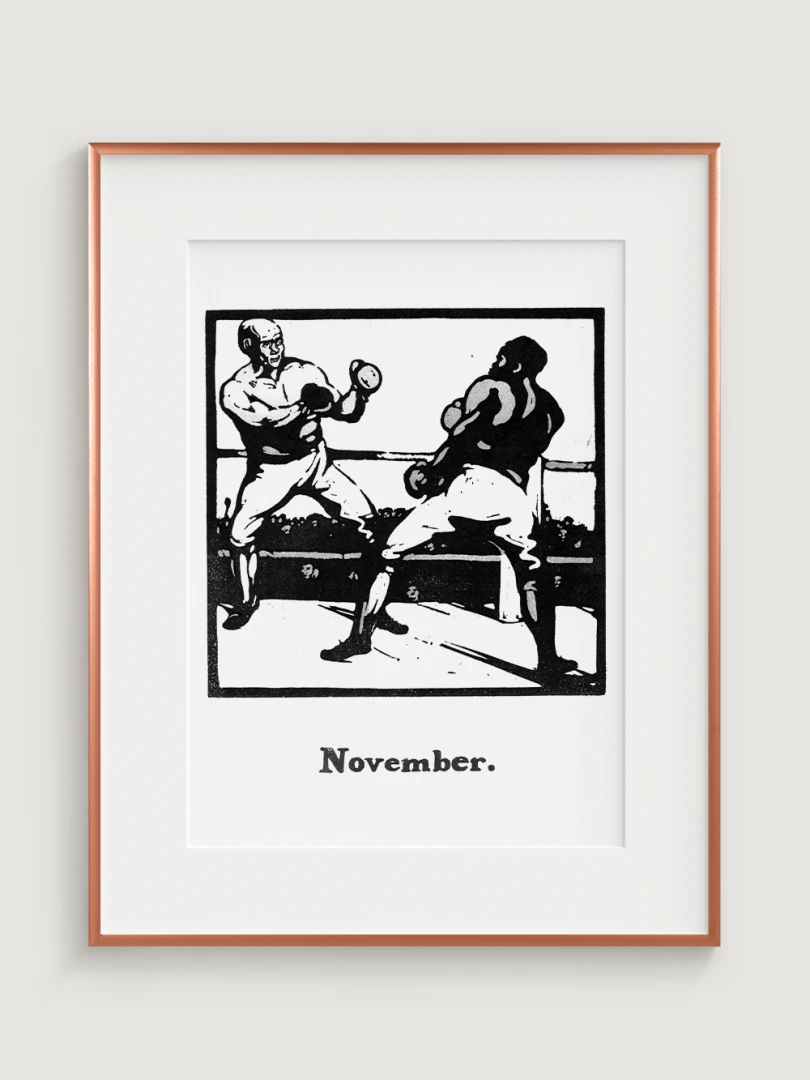 Tento dynamický umelecký print Box (An Almanac of Twelve Sports: Boxing) pochádza z úspešnej série drevorezov, ktorú vytvoril William Nicholson pre vydavateľa Williama Heinemanna na prelome 19. a 20. storočia. Séria An Almanac of Twelve Sports zachytáva dvanásť tradičných britských športov a voľnočasových aktivít – každý mesiac reprezentuje jedno pohybové umenie, ktoré je pre dané obdobie typické.